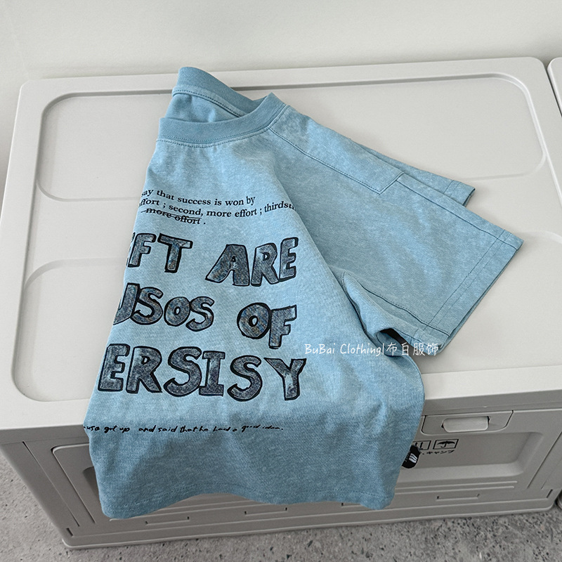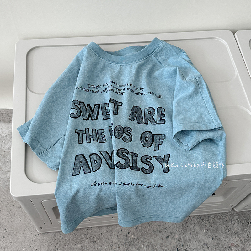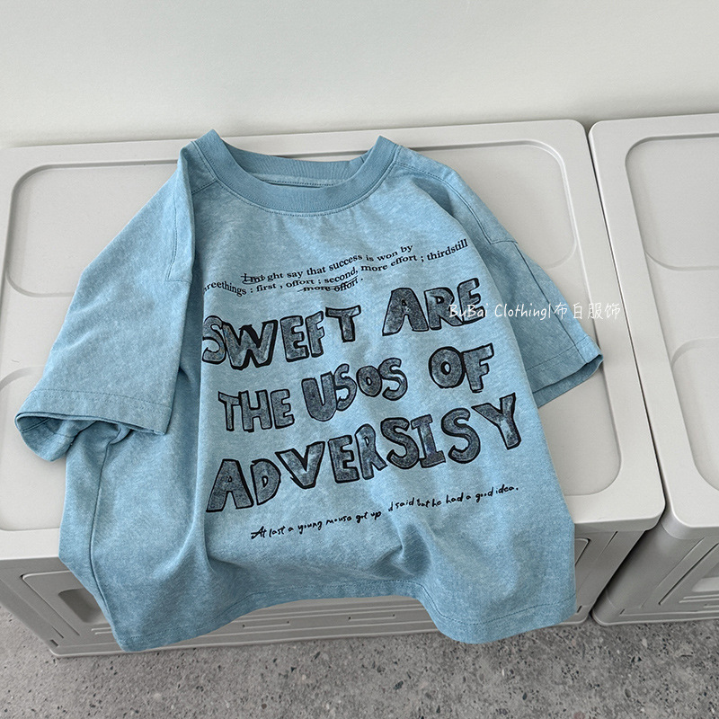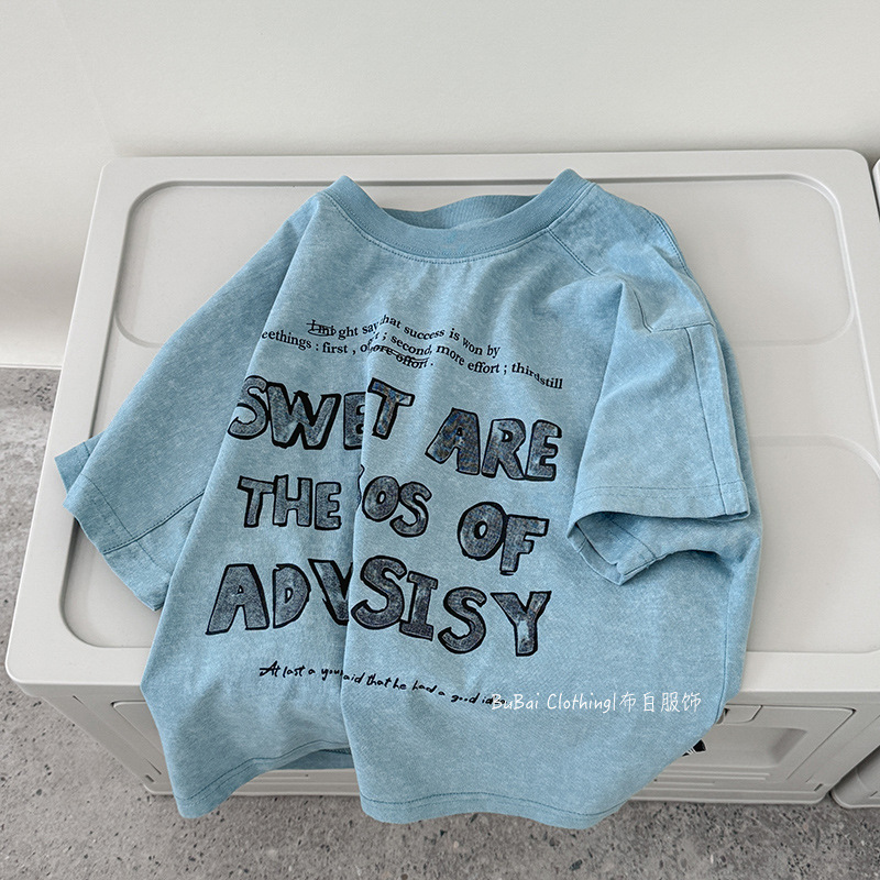 어린이 반팔 티셔츠 2025 봄과 여름 소년 편지 둥근 목 T 반소매 어린이 서양식 느슨한 통기성 트렌디 탑스토어 가기