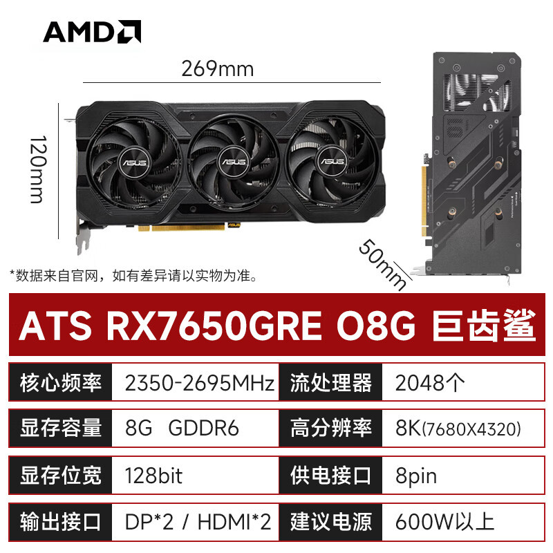 ASUS ATS RX7650GRE O8G Megalodon 게임 데스크톱 그래픽 카드스토어 가기