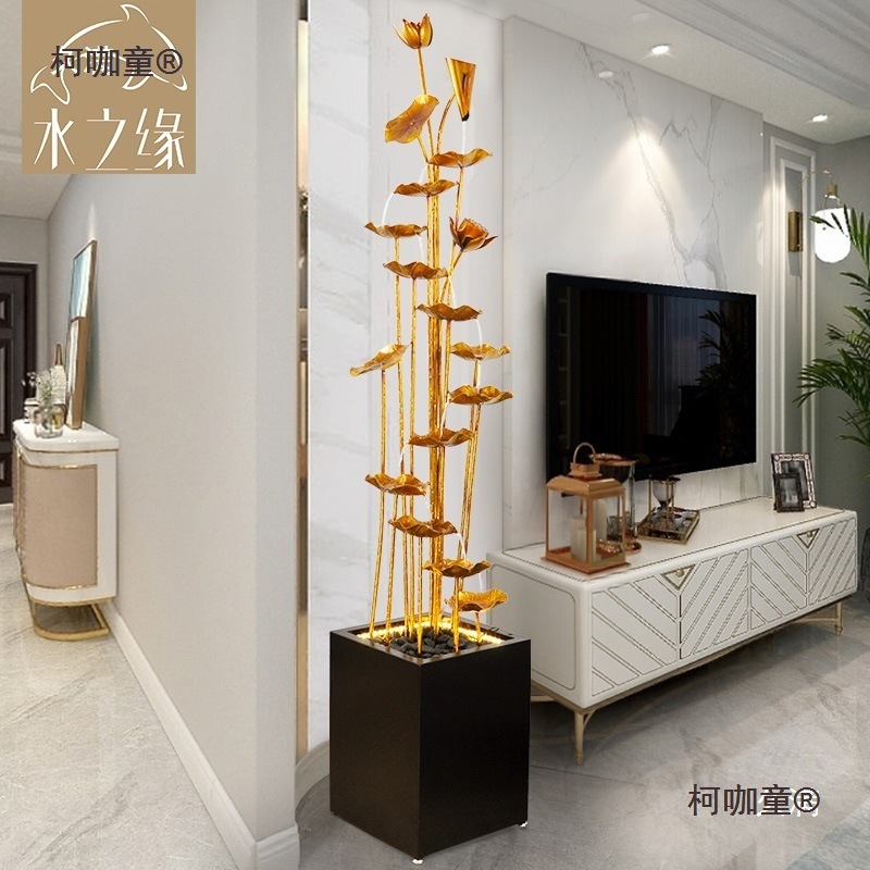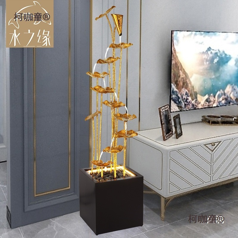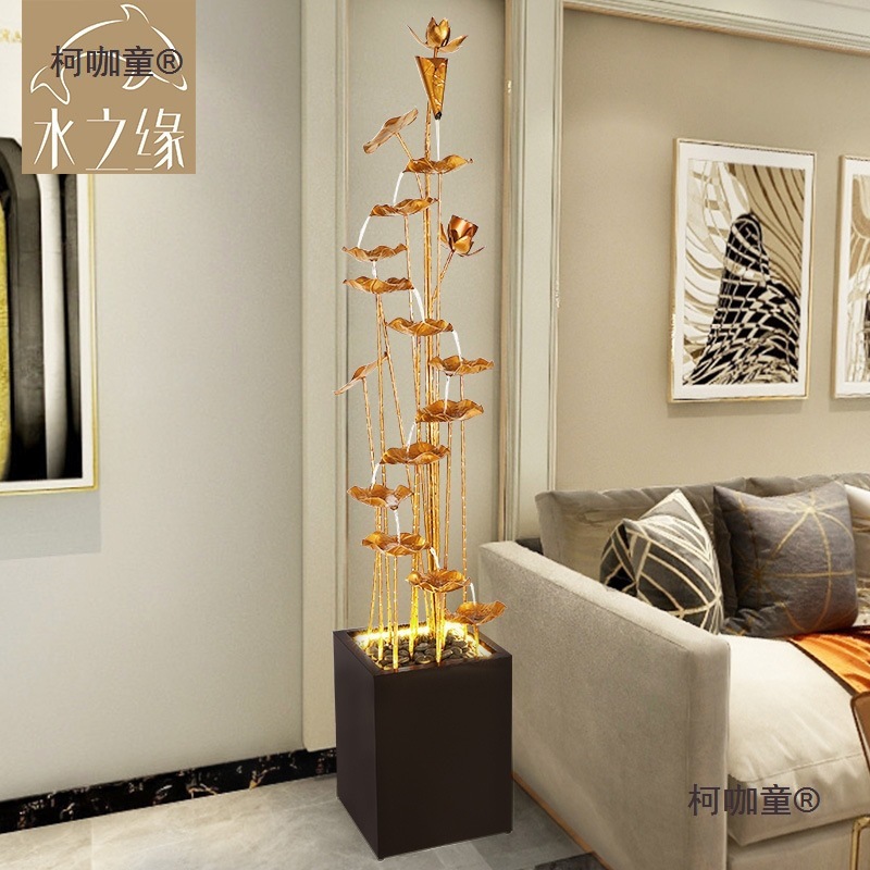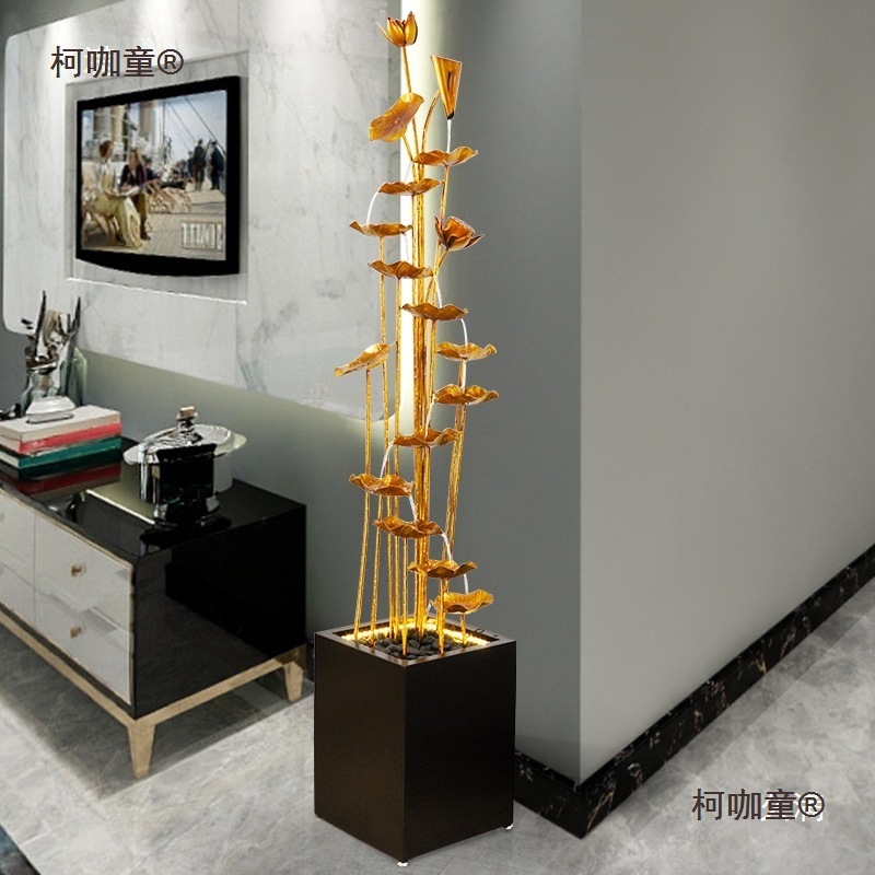 간단한 연꽃 금속 흐르는 물 바닥에 서 있는 순환 수경 장식품 실내 거실 분수 사무실 오프닝 Metabo스토어 가기