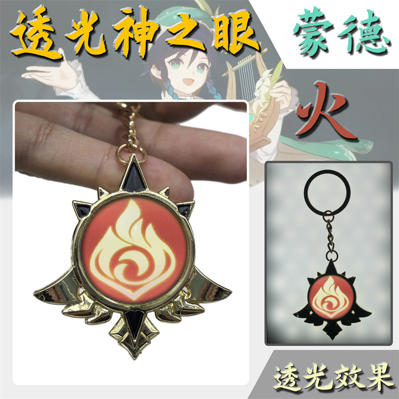 게임 주변기기 눈의 신 요소 투명 버전 눈의 신 금속 펜던트 액세서리 학교 가방 열쇠 고리 싱글