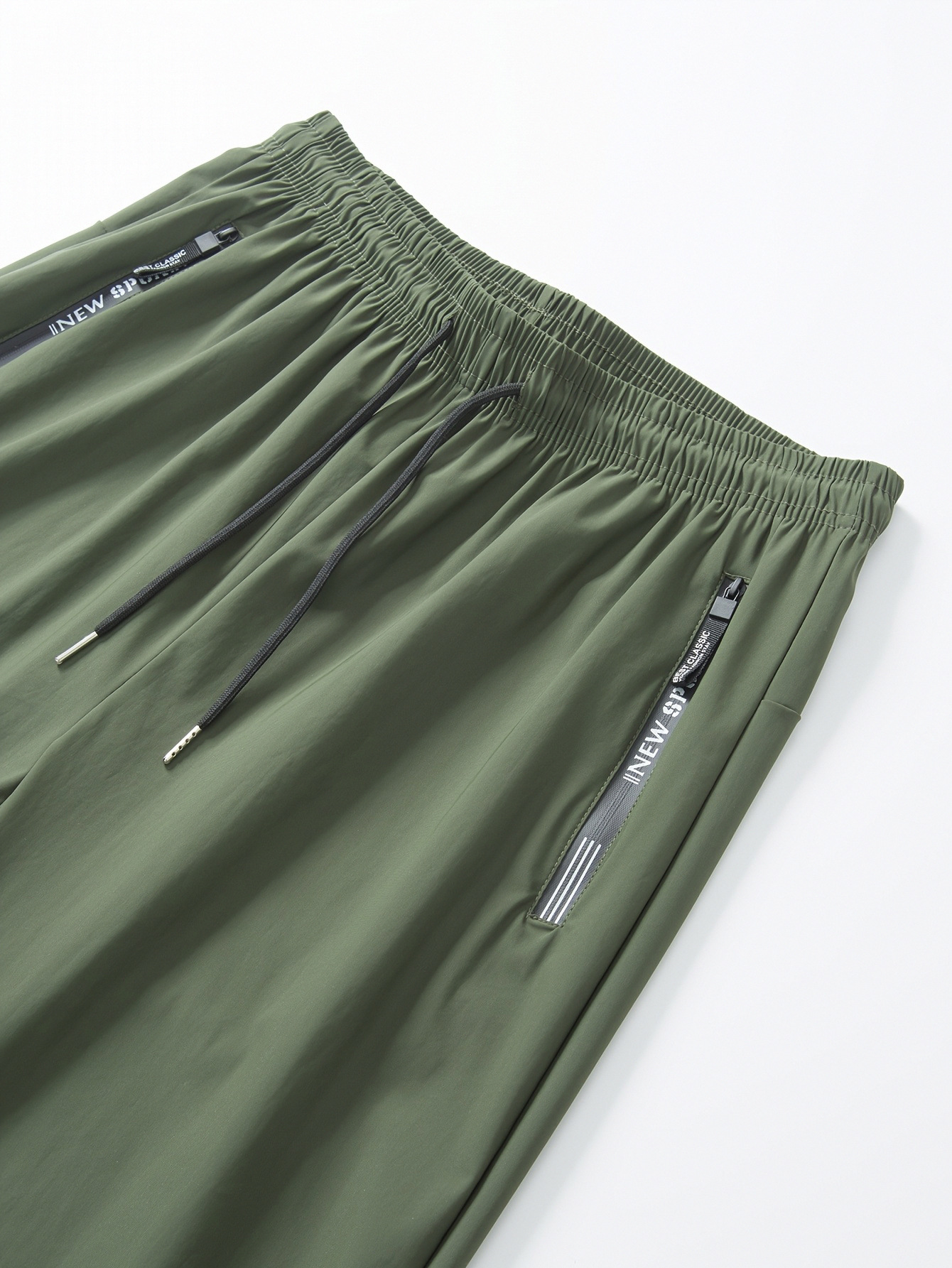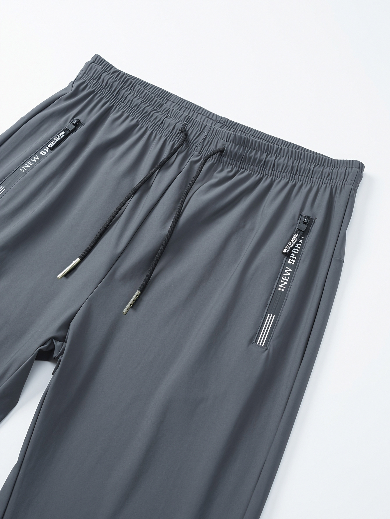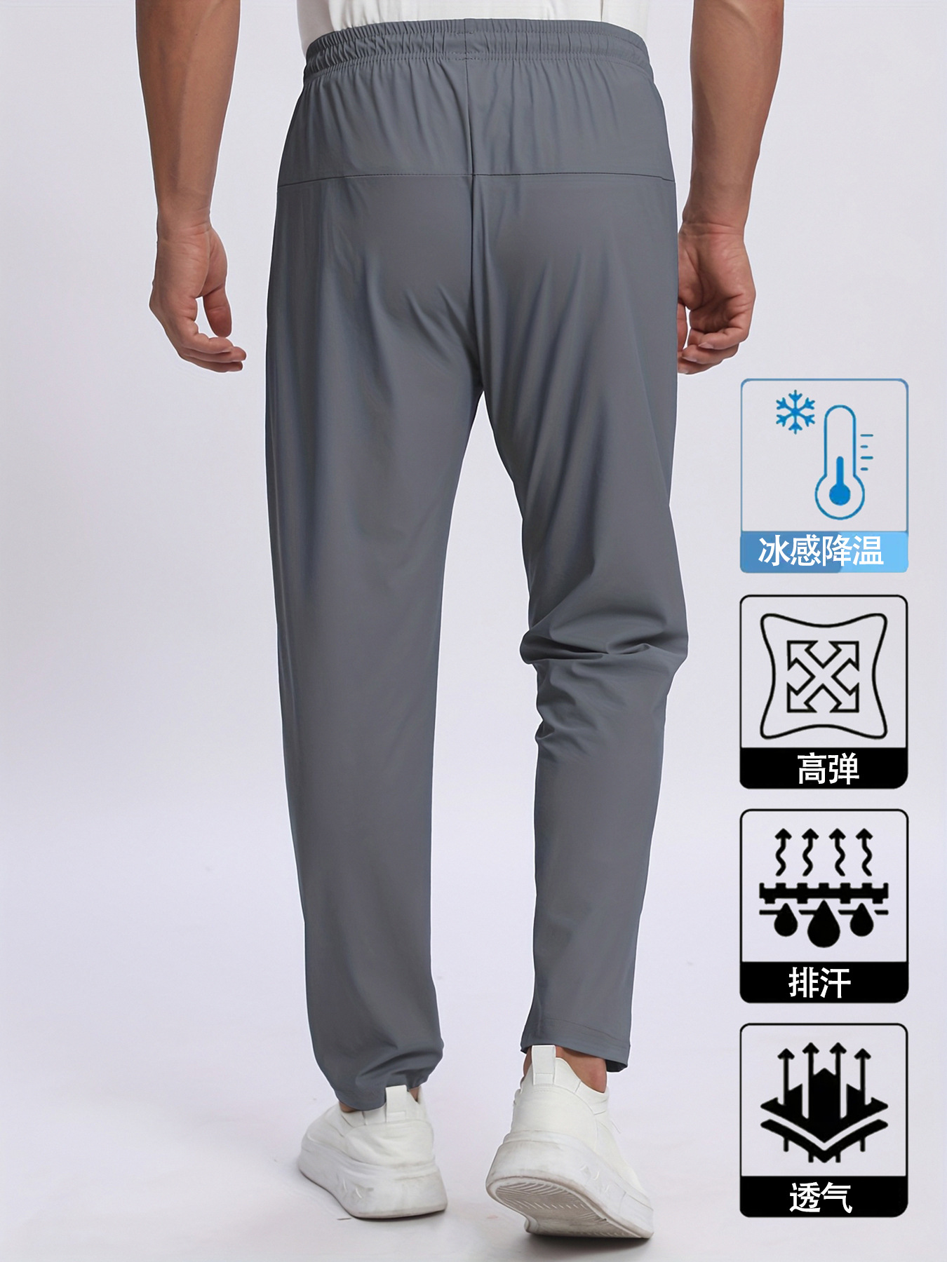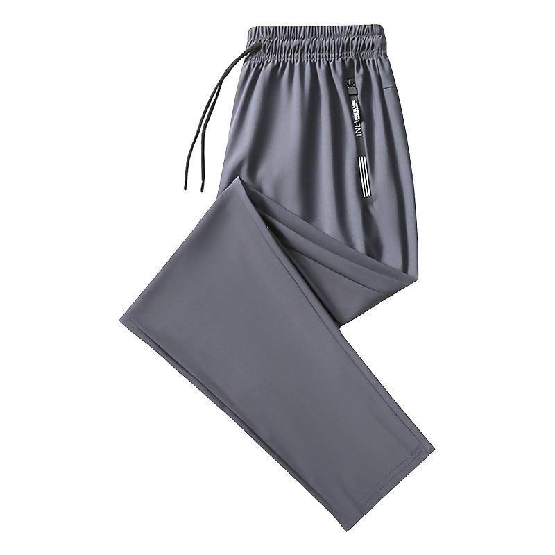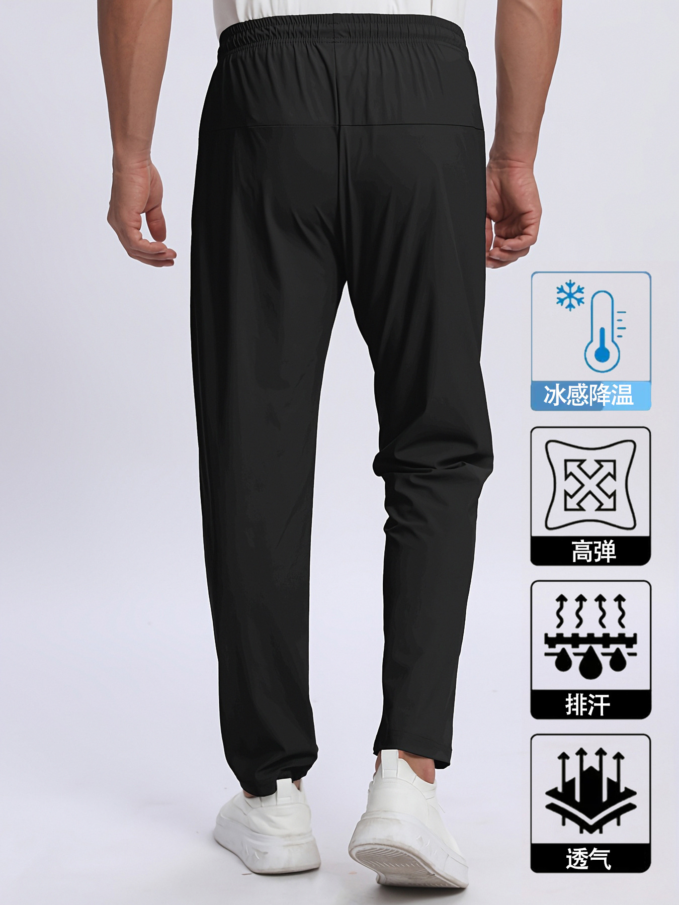 유럽 사이즈 여름 얇은 얼음 실크 바지 남성용 속건성 스포츠 바지 느슨한 에어컨 바지 스트레이트 레그 타이 캐주얼 바지