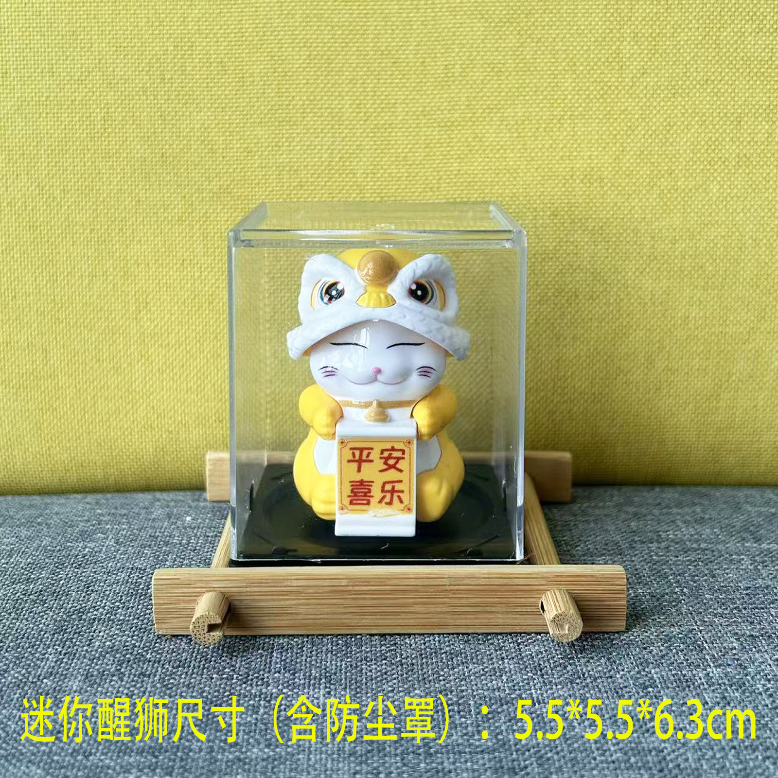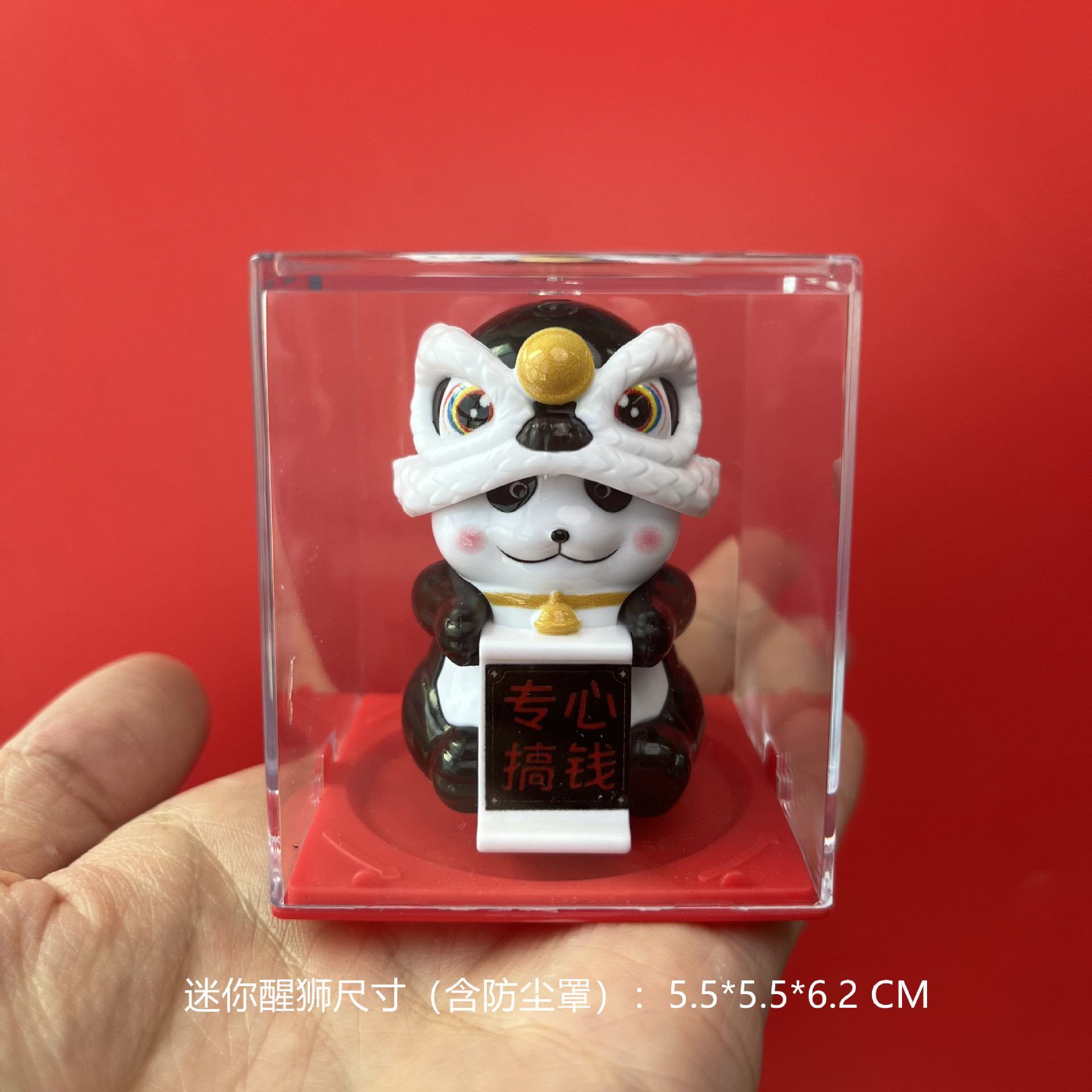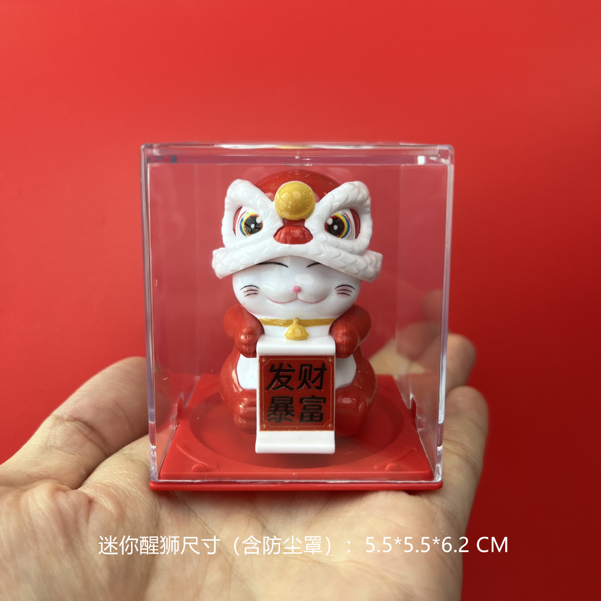 Guochao 태양열 미니 사자 깨우기 행운의 고양이 사무실 책상 자동차 현관 거실 장식품 상점 오프닝 선물