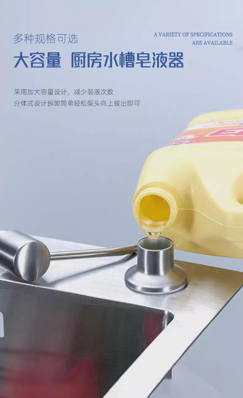 싱크대 비누 디스펜서 주방 싱크대 프레스형 스테인리스 주방세제 디스펜서 욕실 배수 방균