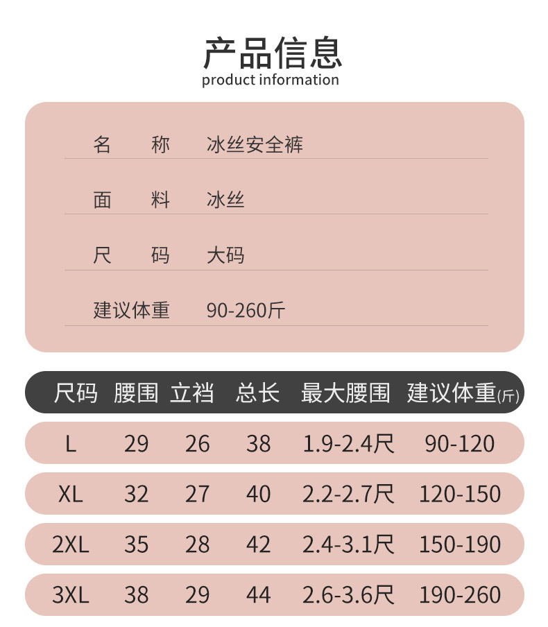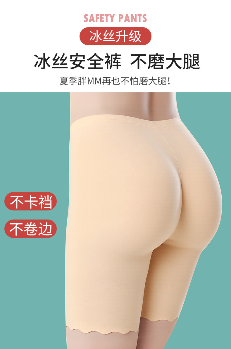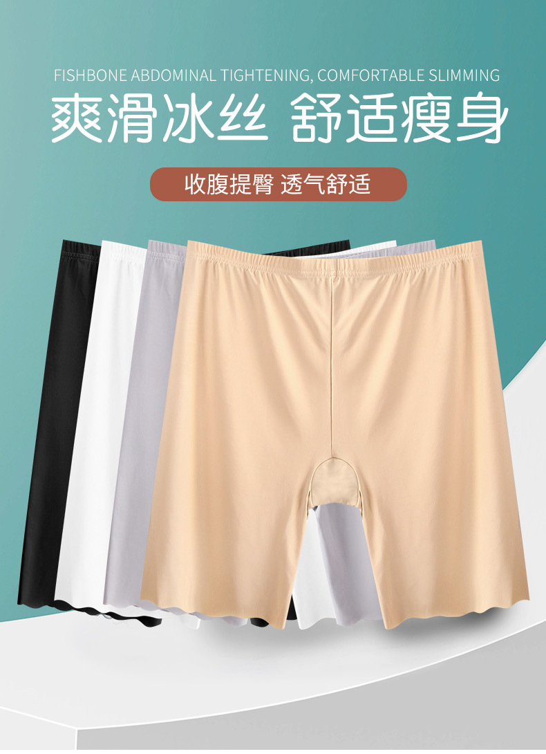 여성용 플러스 사이즈 안전바지, 노출방지, 탈락방지, 비롤링, 뚱뚱한 mm 100kg 아이스 실크 심리스 플러스 팻 하이웨이스트 바닥스토어 가기