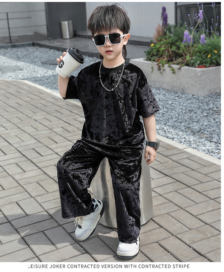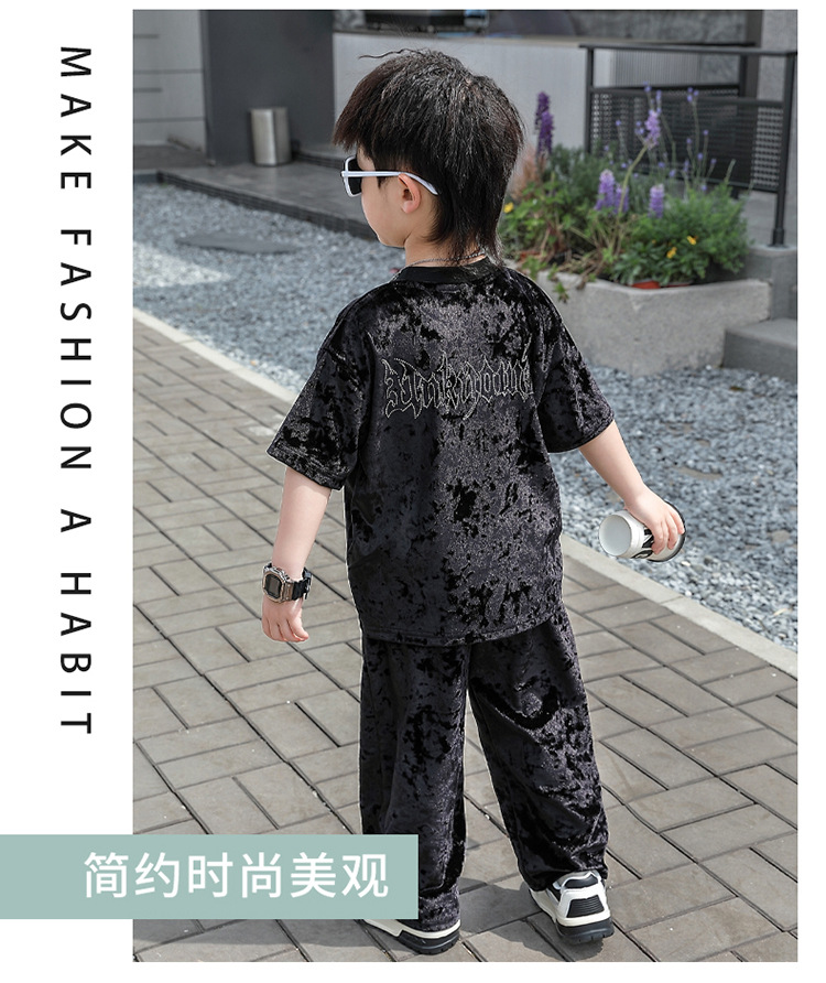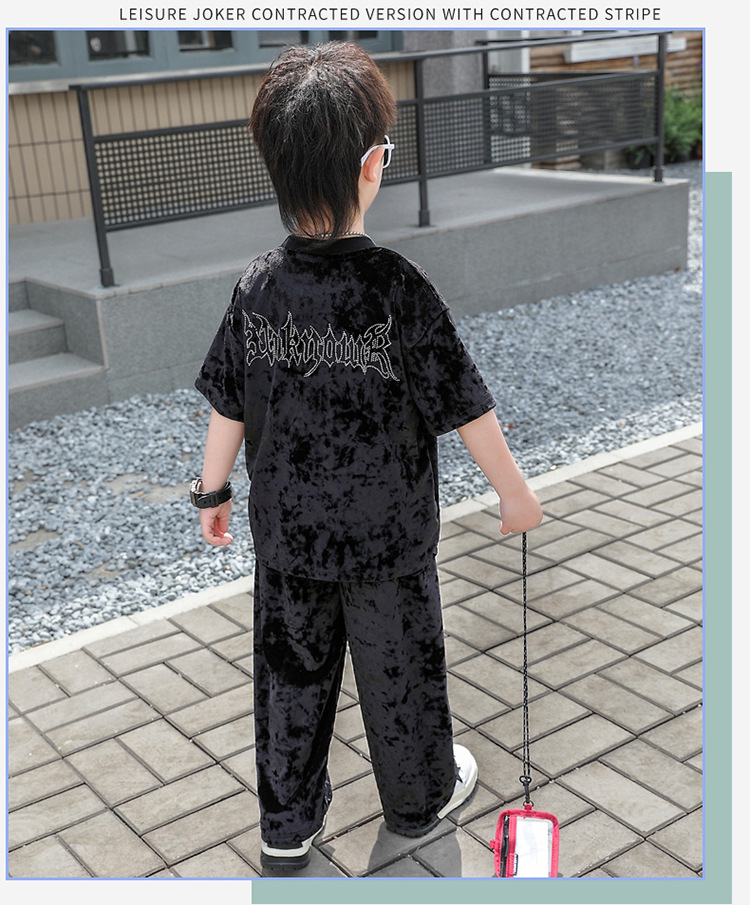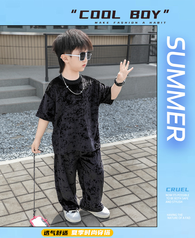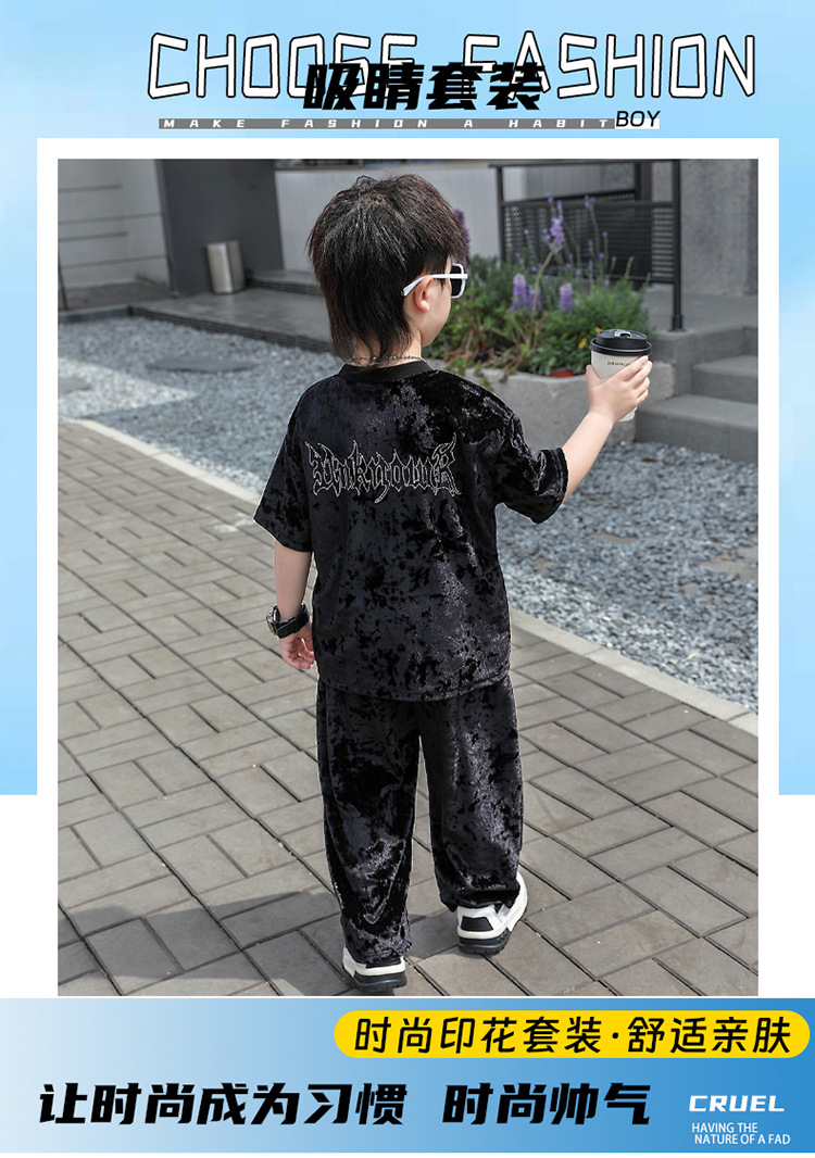 남학생 벨벳 반팔 세트 2025 여름 새 스타일 어린이 얇은 캐주얼 스포츠 커버 어린이 서양식 옷스토어 가기