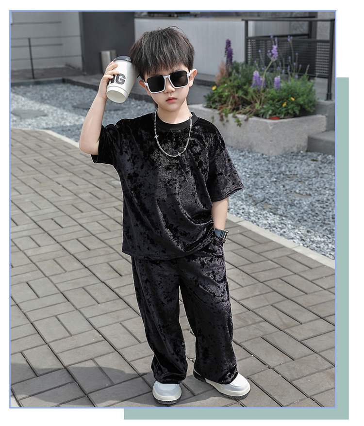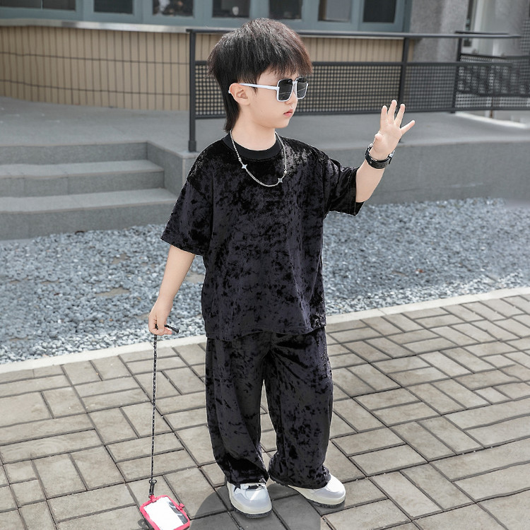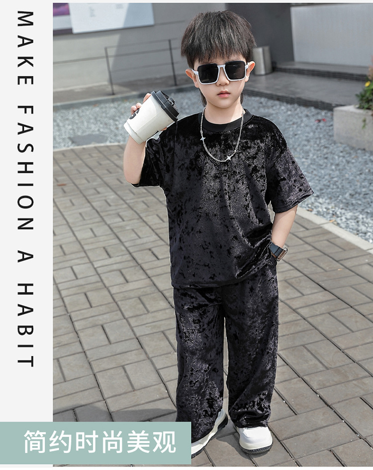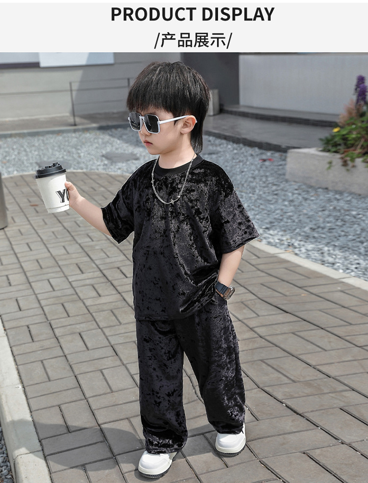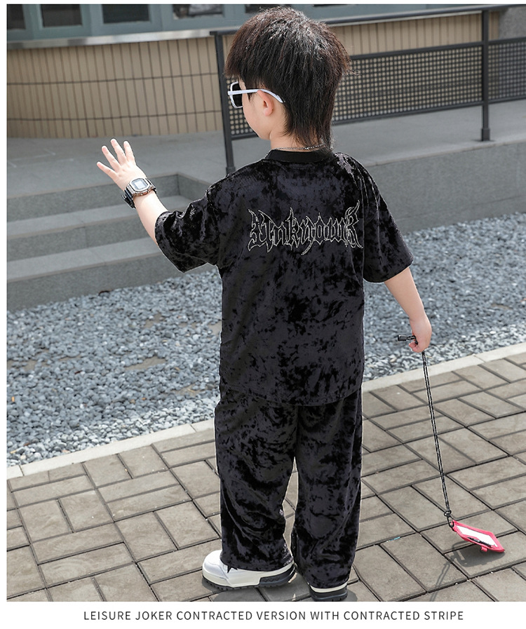 남학생 벨벳 반팔 세트 2025 여름 새 스타일 어린이 얇은 캐주얼 스포츠 커버 어린이 서양식 옷스토어 가기