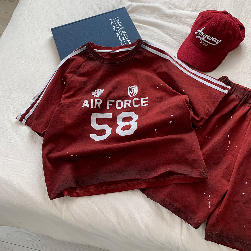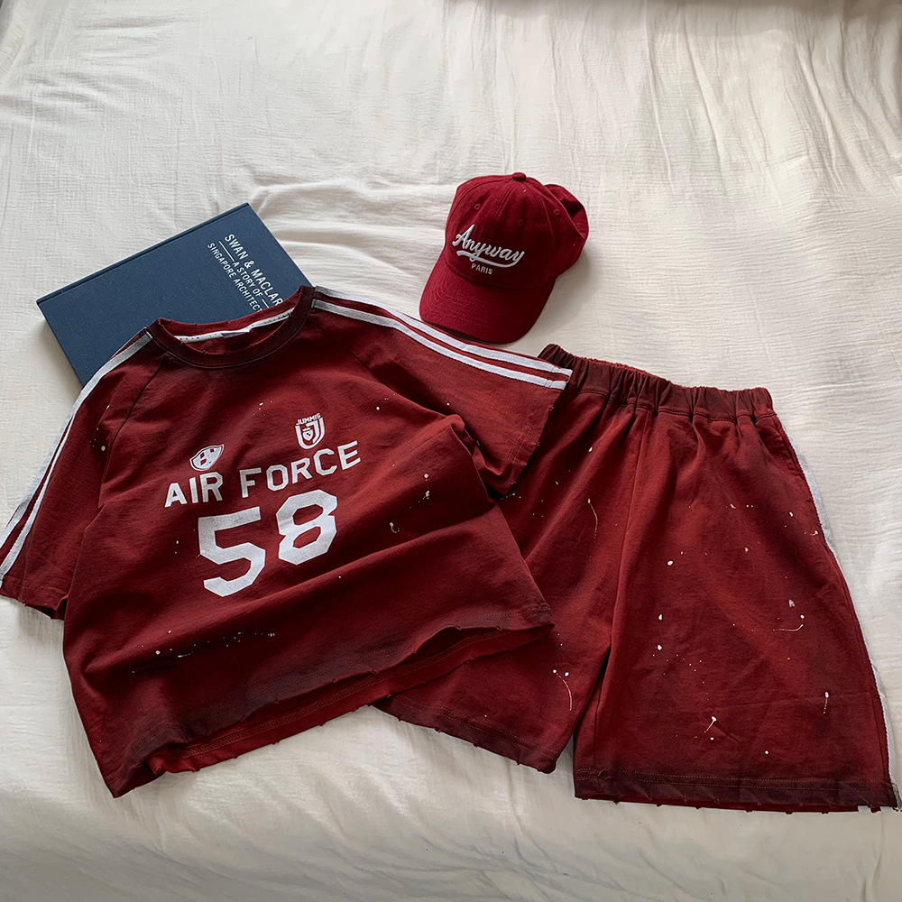 소년 여름 정장 2025 새로운 잉크젯 반팔 티셔츠 아기 잘 생긴 여름 정장 중소 어린이 투피스 세트 유행 t스토어 가기