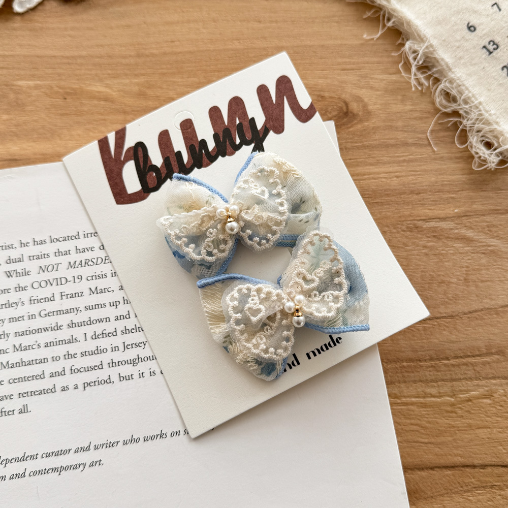 봄과 여름 푸른 꽃 레이스 활 머리띠 신선한 올 매치 소녀 헤어 액세서리 깨진 머리 머리띠
