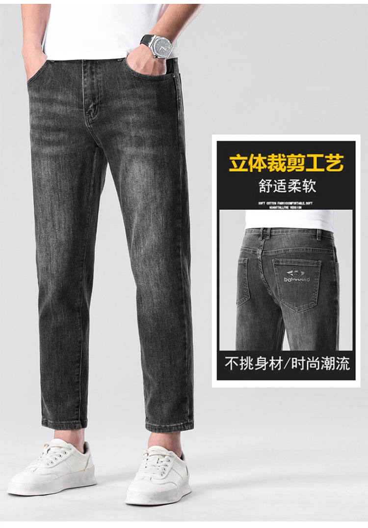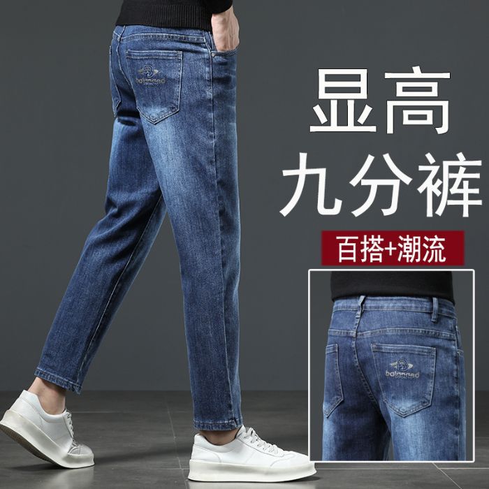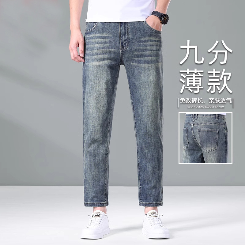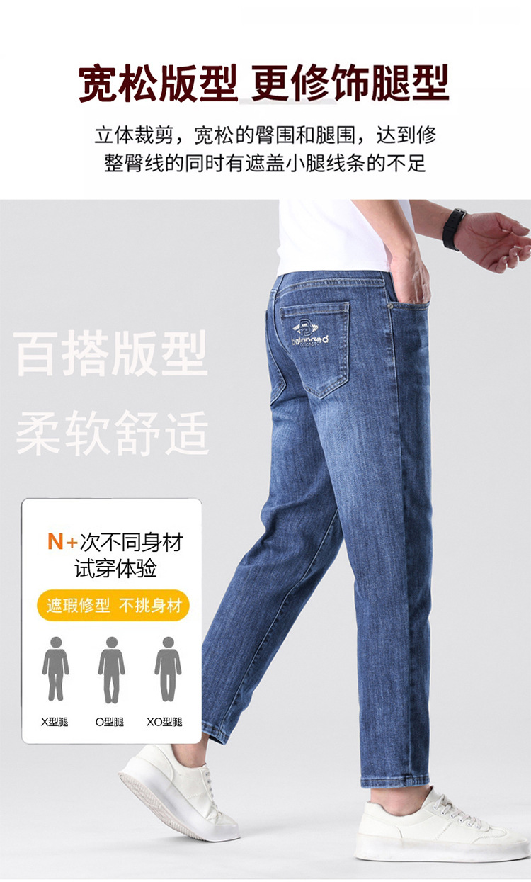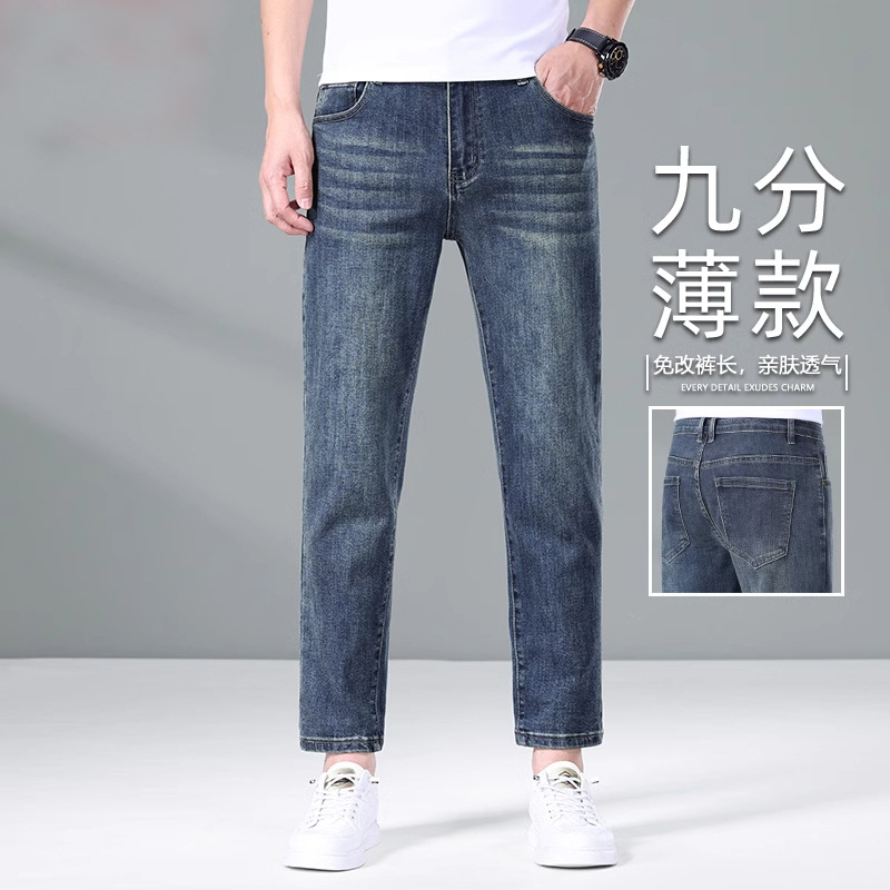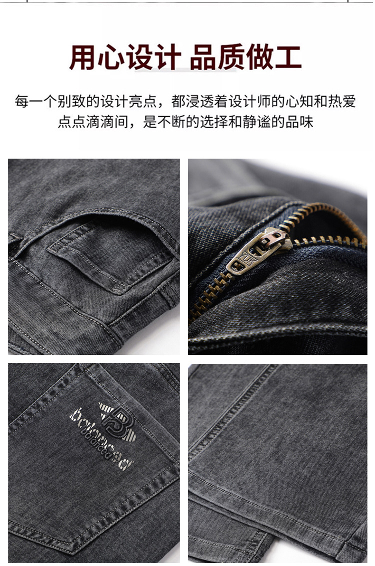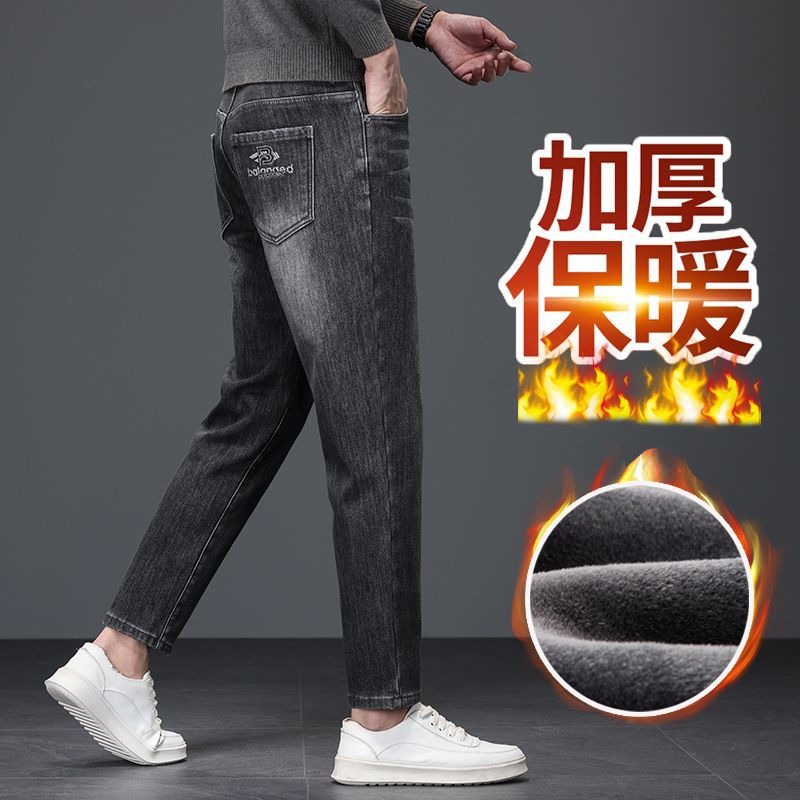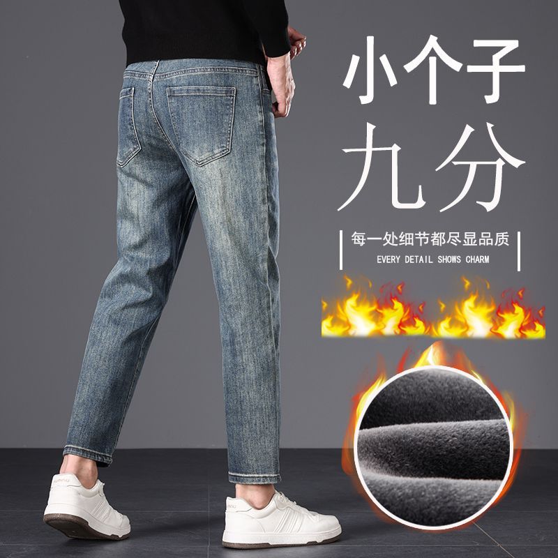 가을 겨울용 기모 안감 두꺼운 남성 9부 바지 2025 루즈핏 데님 팬츠 스트레이트 캐주얼 신축성 중년 남성 9부 바지스토어 가기