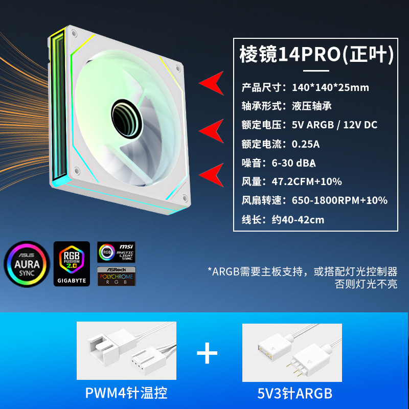 프리즘 14pro 팬 14cm 컴퓨터 섀시 열 분산 화이트 Argb Shengguang 동기 무한 pwm 라디에이터스토어 가기
