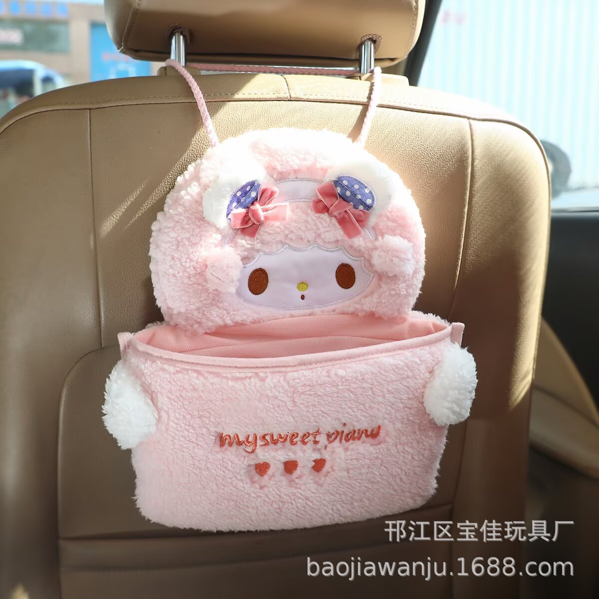 귀여운 만화 멜로디 양 보관 가방 교수형 가방 쓰레기 봉투 다기능 자동차 잔해 티슈 보관 가방스토어 가기