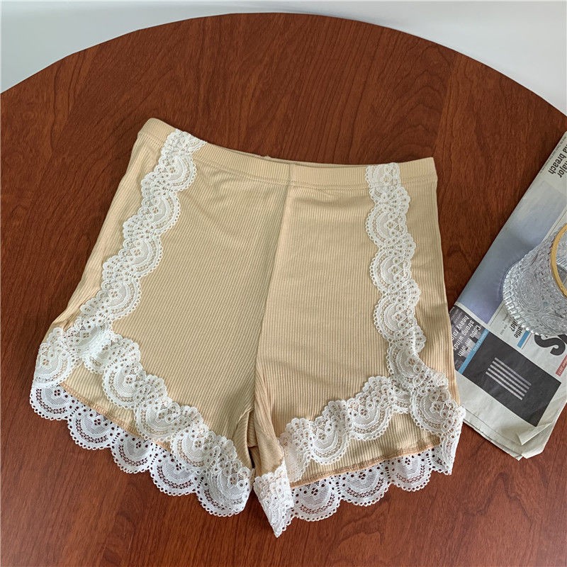여름 아이스 실크 안전 바지 여성의 얇은 안티 유식 외부 치마 사이드 레이스 하이 허리 플러스 사이즈 베이스 반바지 착용