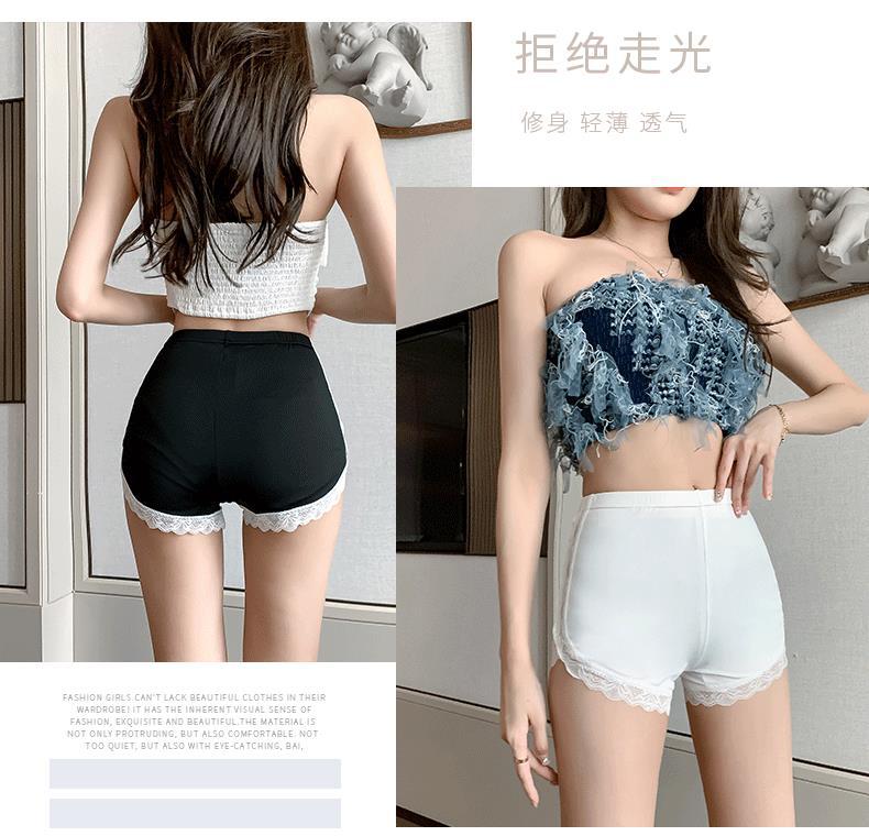 여름 아이스 실크 안전 바지 여성의 얇은 안티 유식 외부 치마 사이드 레이스 하이 허리 플러스 사이즈 베이스 반바지 착용스토어 가기