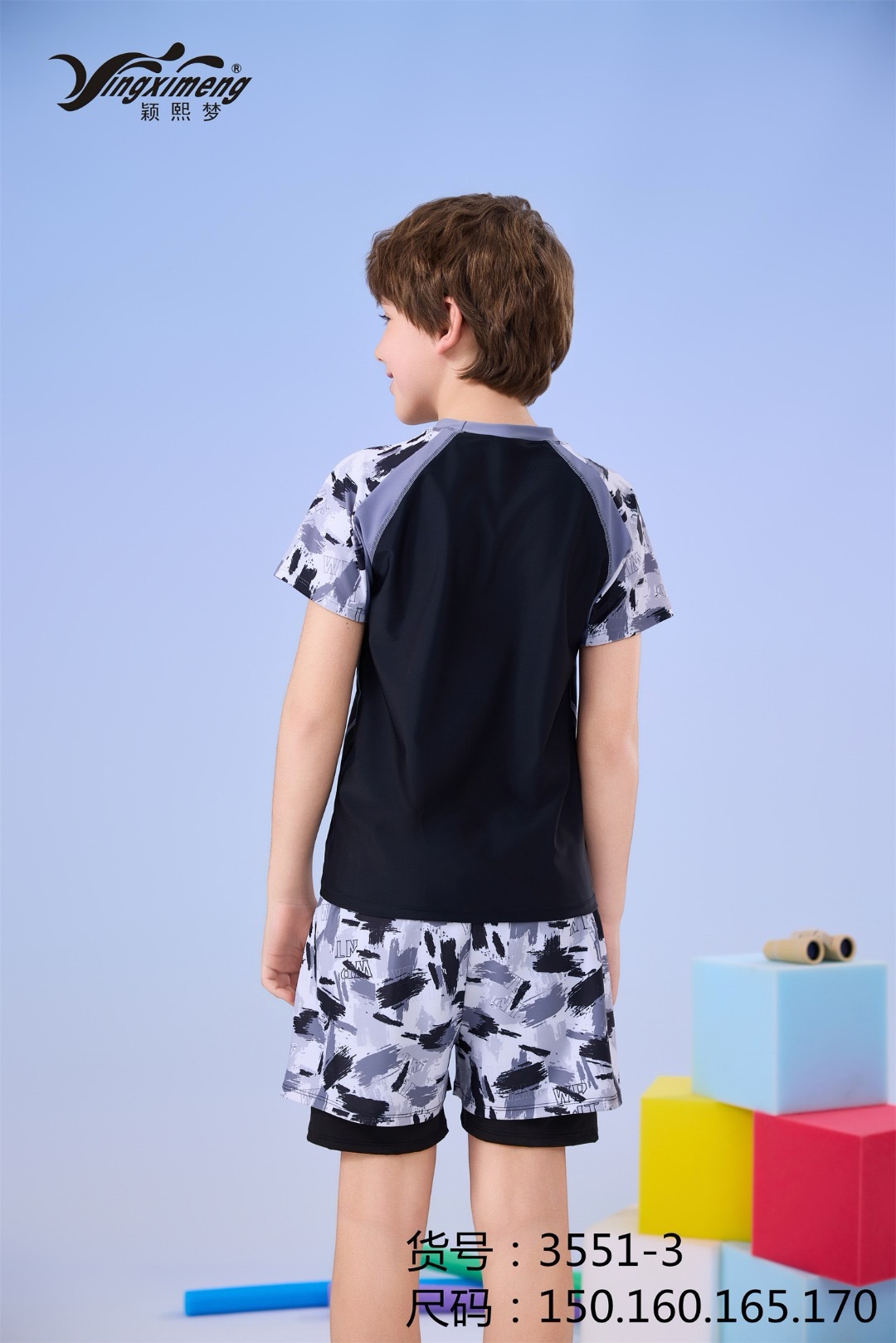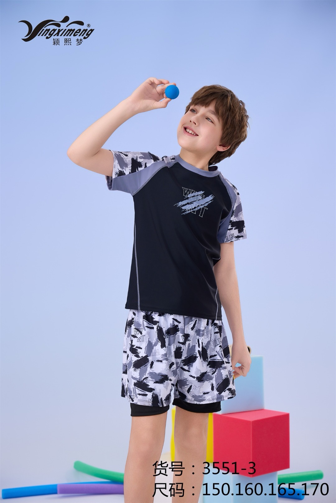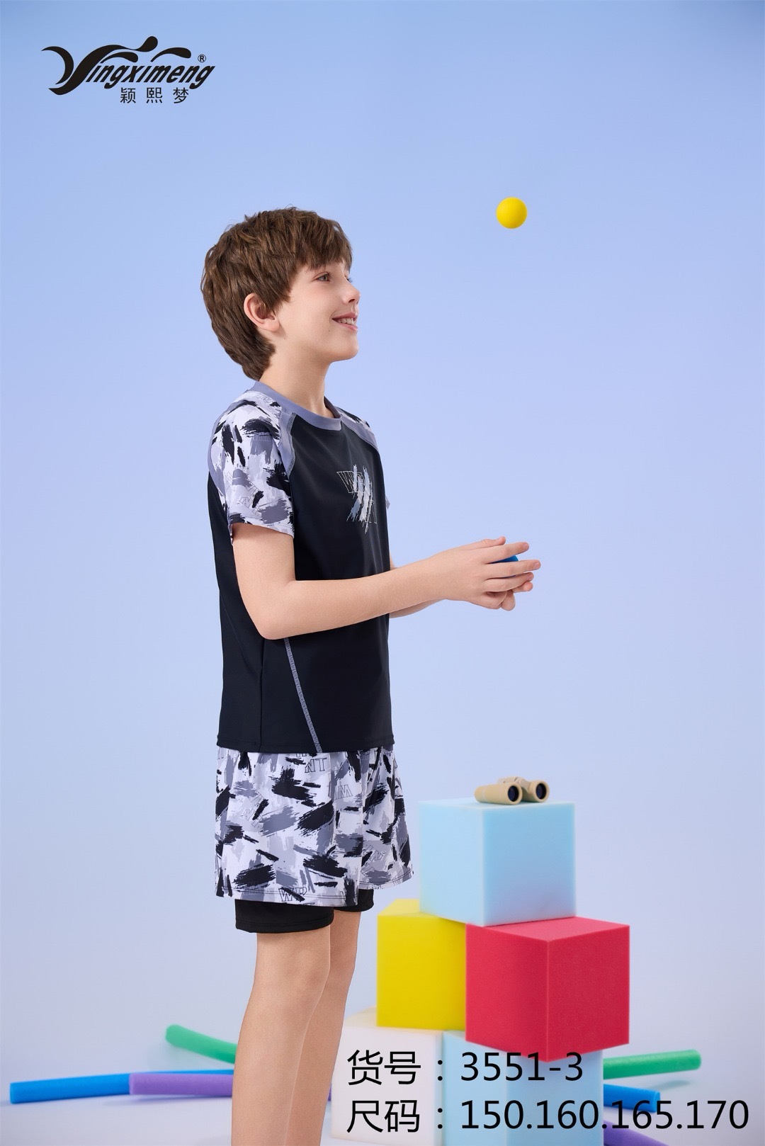 Yingximeng 3551 남아용 수영복, 중대형 아동용 속건성 자외선 차단 학생 남아용 스플릿 투피스 수영복스토어 가기