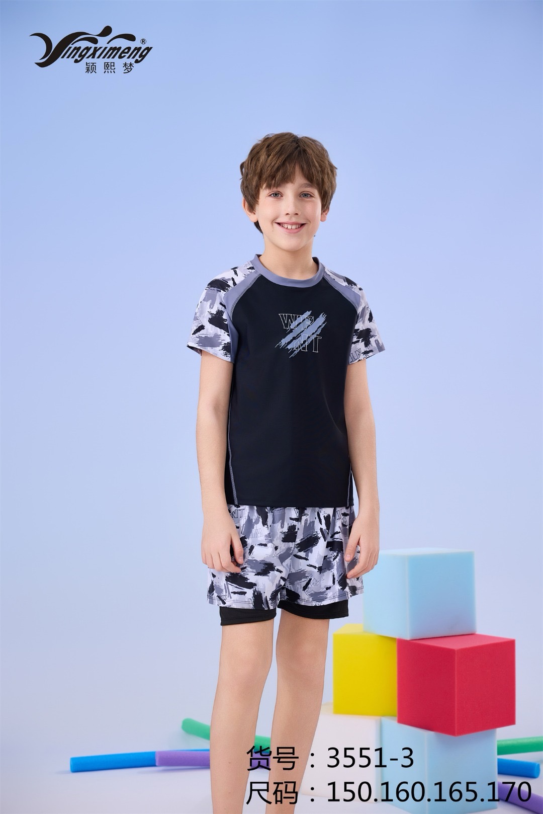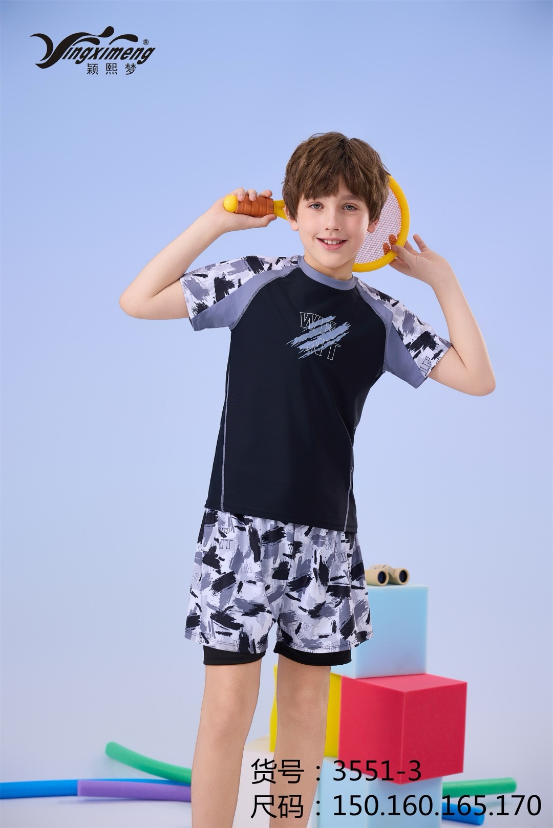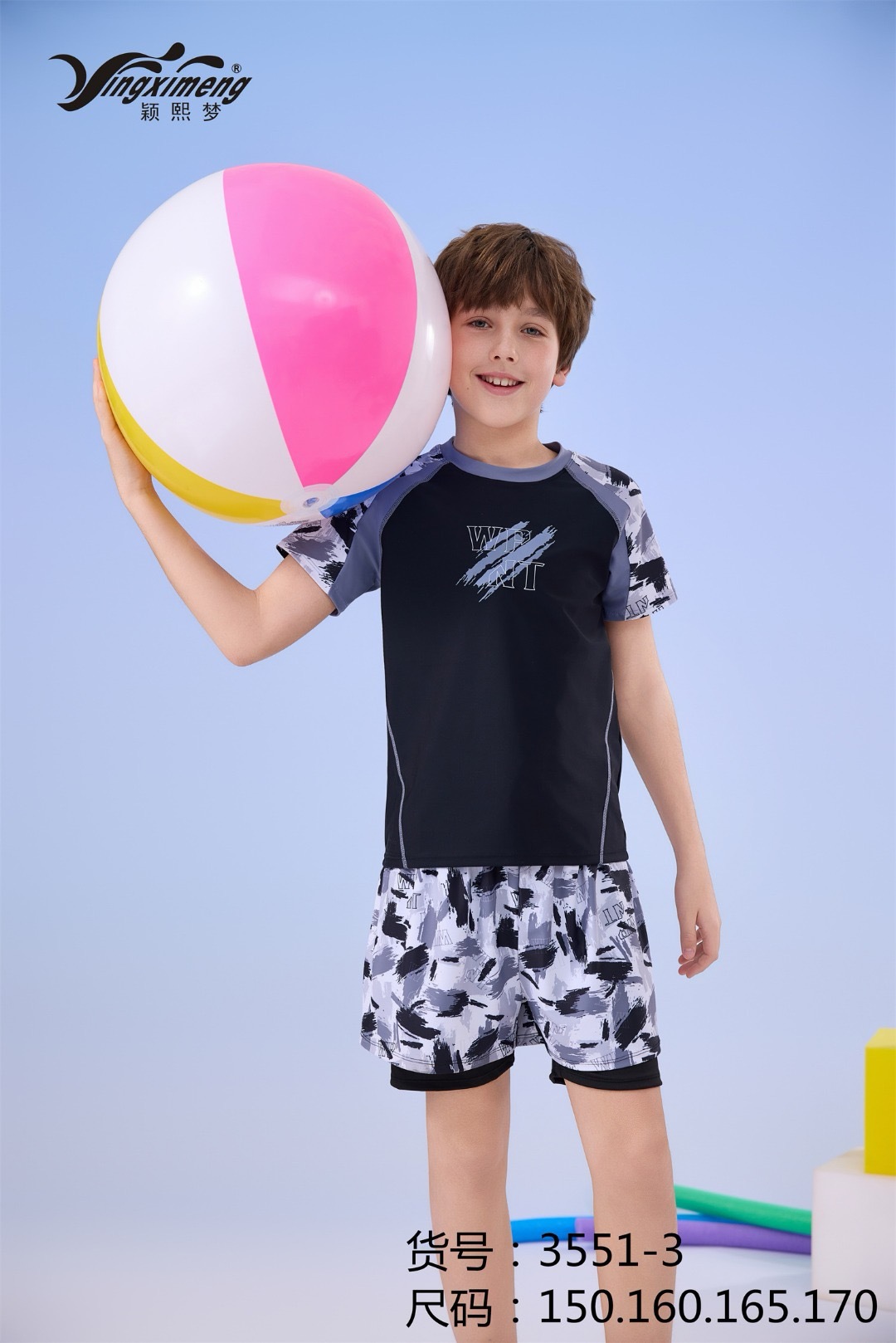 Yingximeng 3551 남아용 수영복, 중대형 아동용 속건성 자외선 차단 학생 남아용 스플릿 투피스 수영복스토어 가기