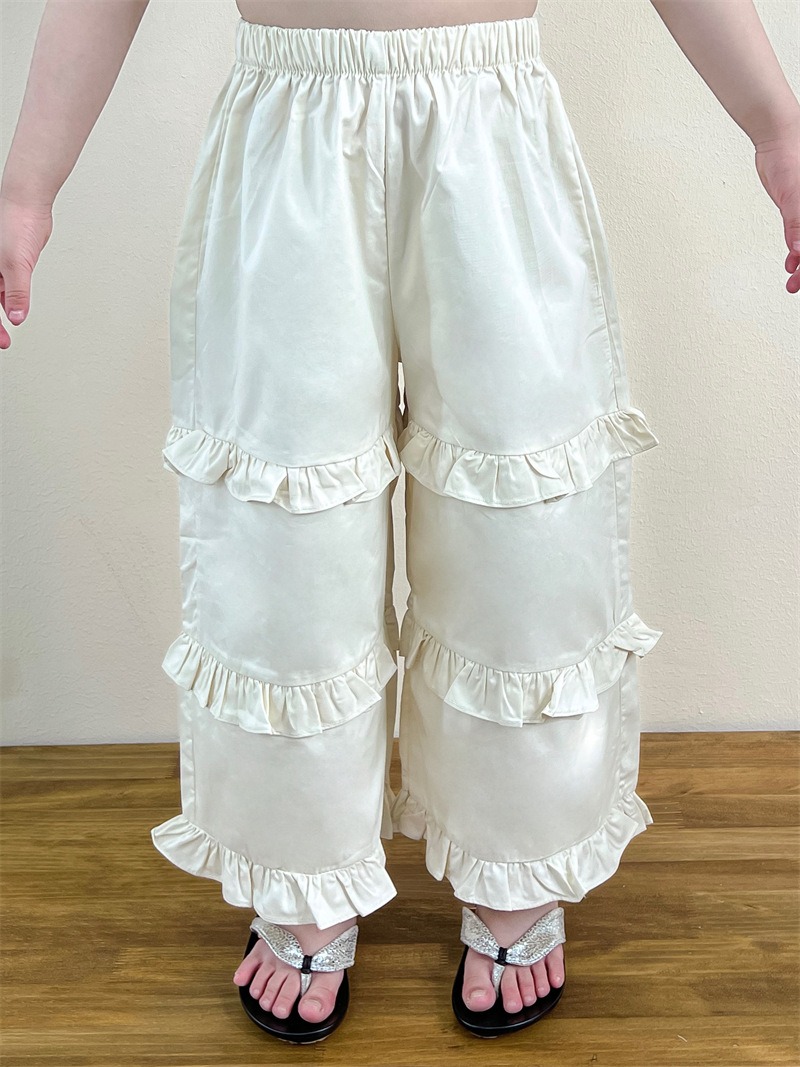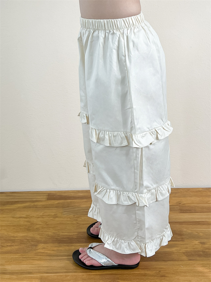 소녀의 여름 모리 레이스 와이드 레그 팬츠 자른 바지