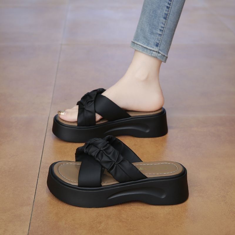 여성용 여름 아우터용 부드러운 밑창 슬리퍼 2025 새로운 다용도 두꺼운 밑창 슬리퍼 캐주얼 해변 해변 로마 샌들스토어 가기