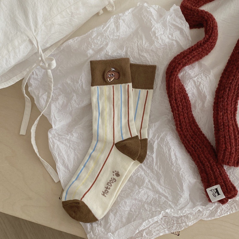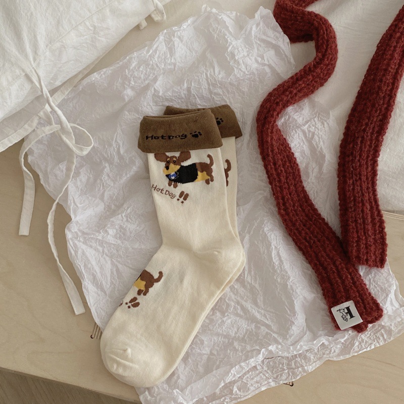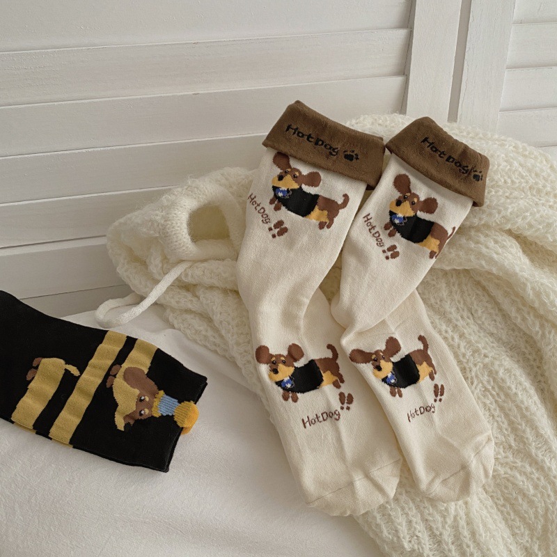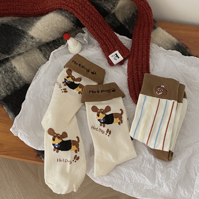 소녀의 귀여운 Weenie 강아지 양말 여성의 중간 길이 양말 봄과 가을 새로운 순수 면 일본 스타일 만화 맞춤형 더미 스타킹