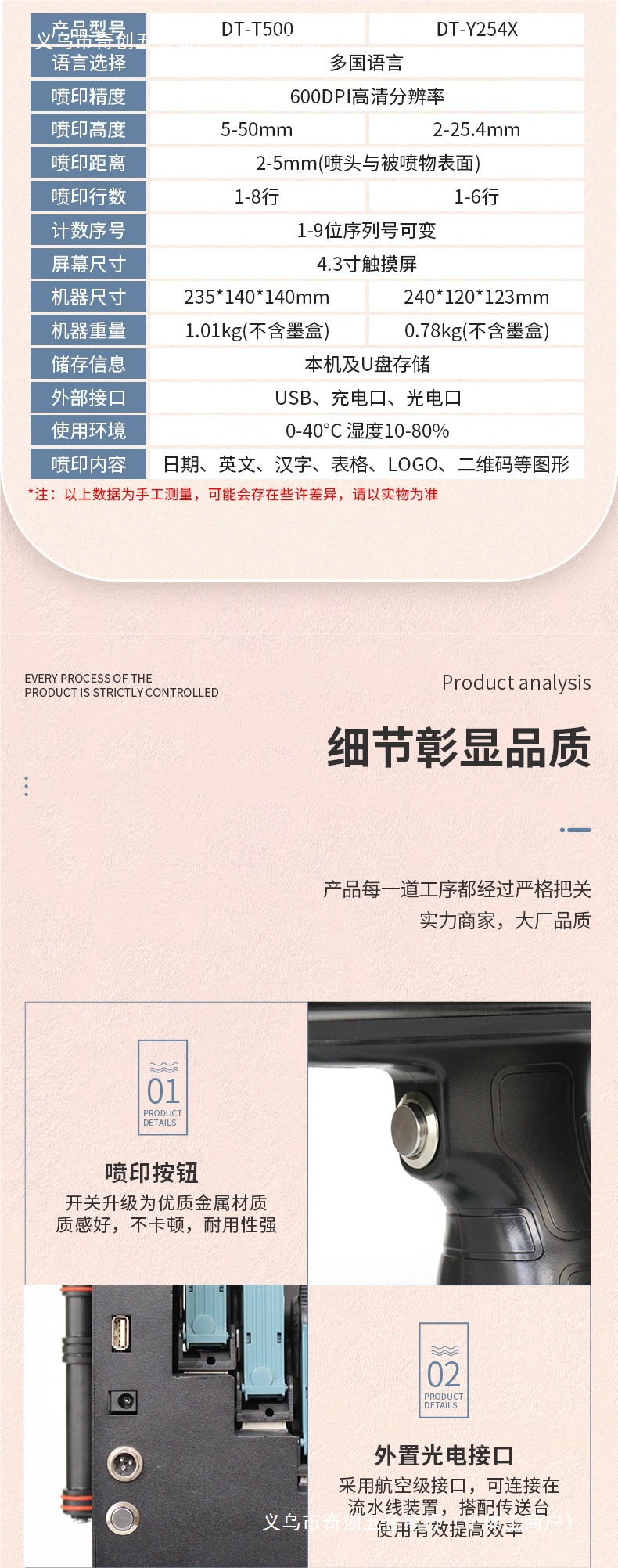 • [듀얼 노즐] T500 잉크젯 프린터(4-50mm 잉크젯 높이 조절 가능)