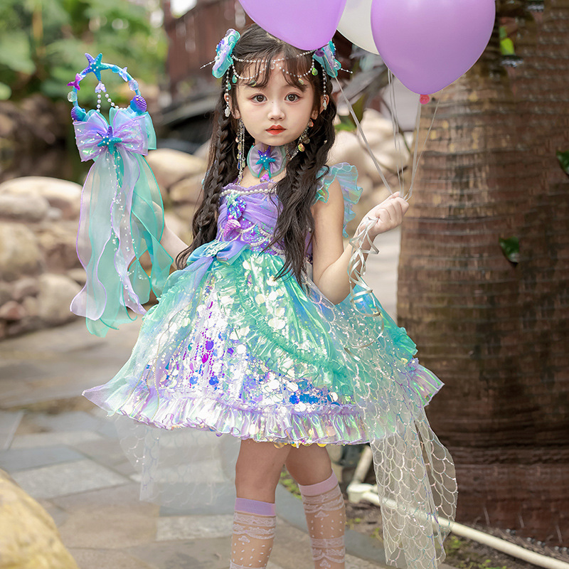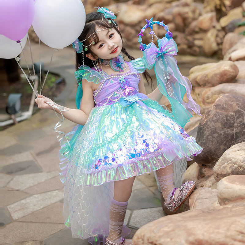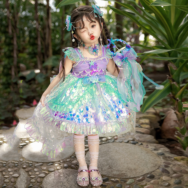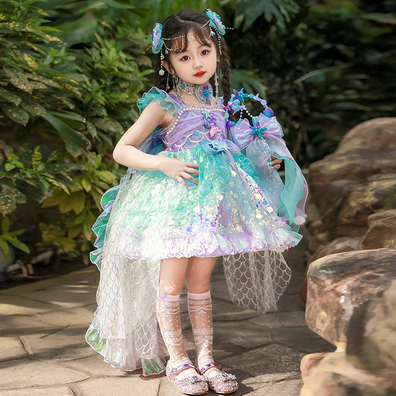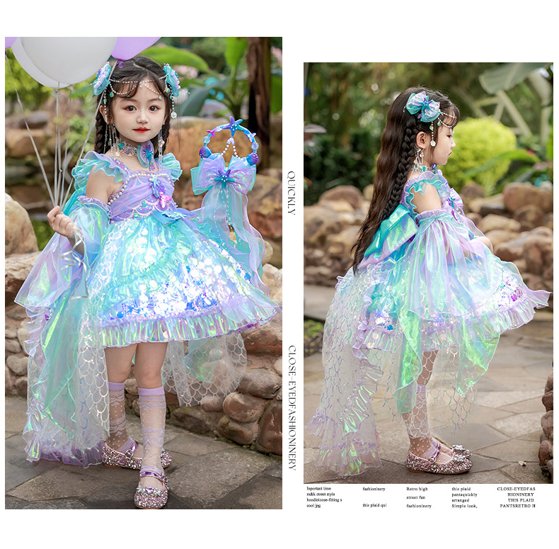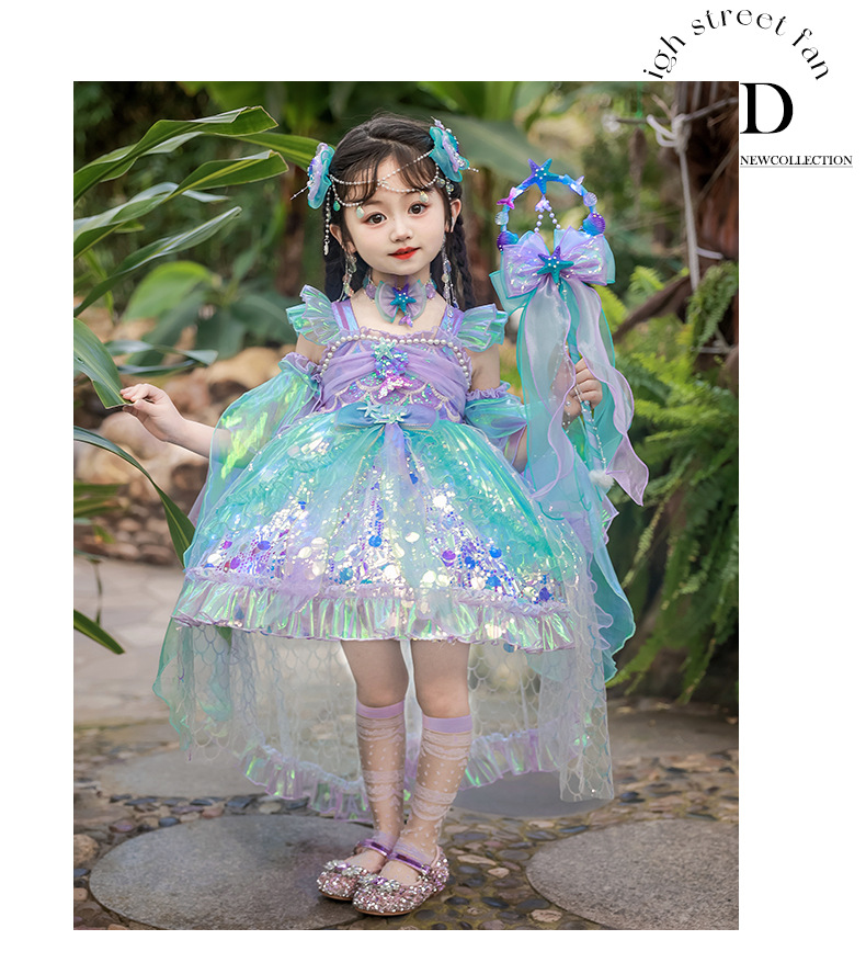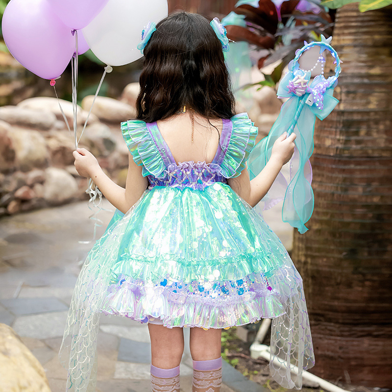 소녀 원피스 2025 여름 새 도착 아기 소녀 인어 로리타 피쉬 테일 공주 어린이 스퀸 스커트