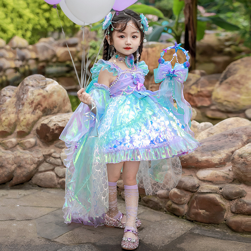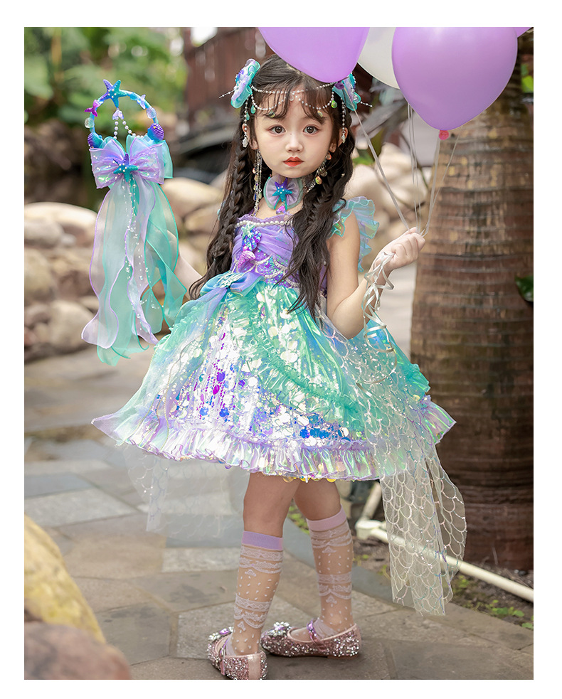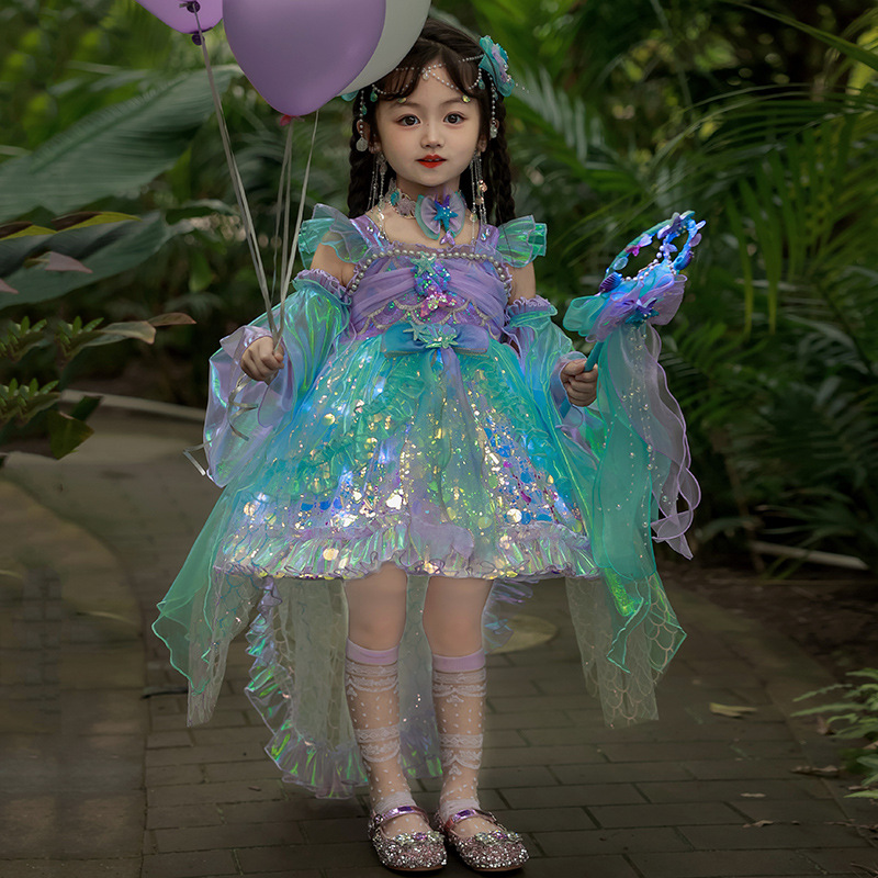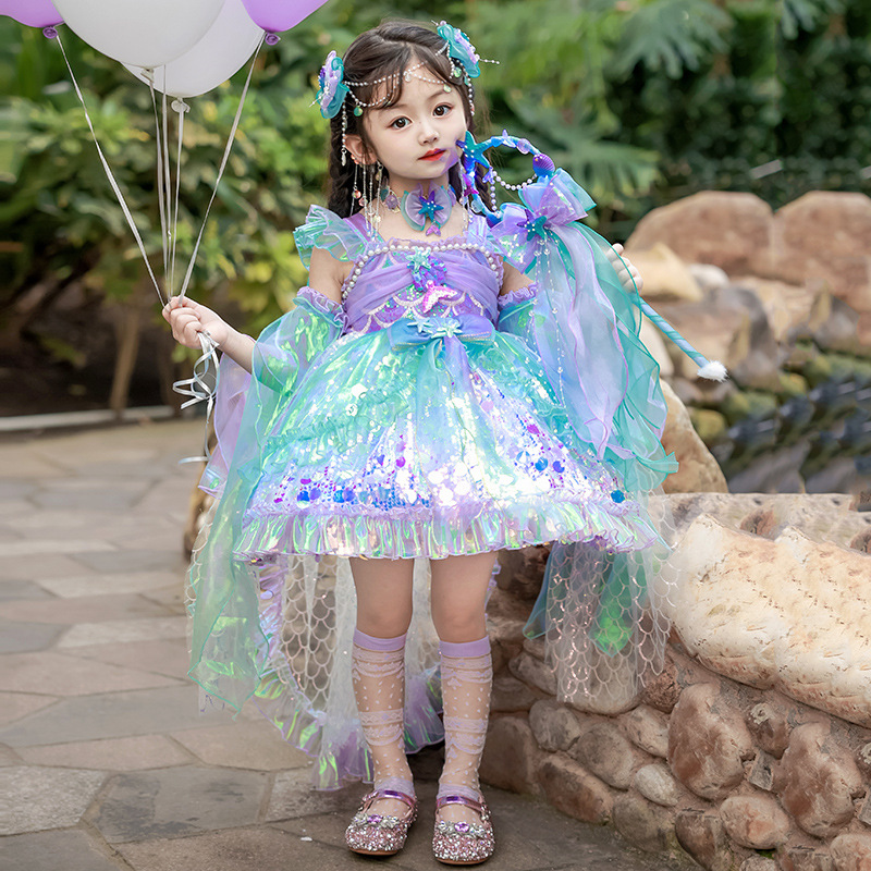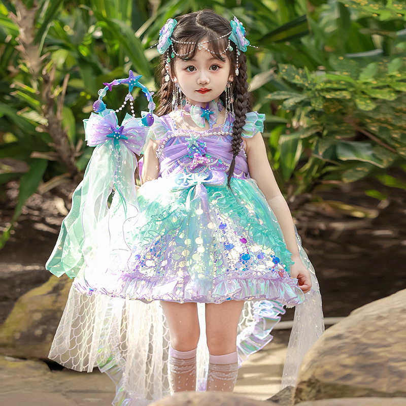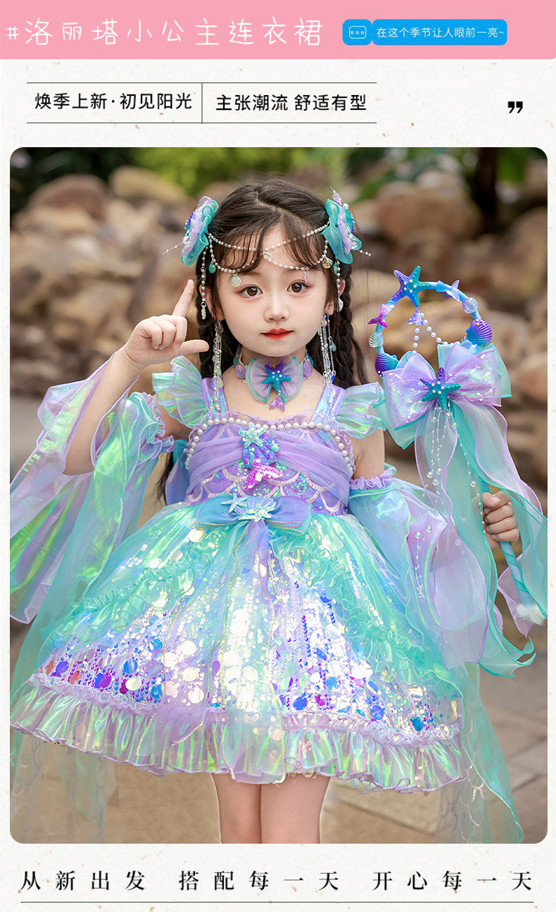 소녀 원피스 2025 여름 새 도착 아기 소녀 인어 로리타 피쉬 테일 공주 어린이 스퀸 스커트