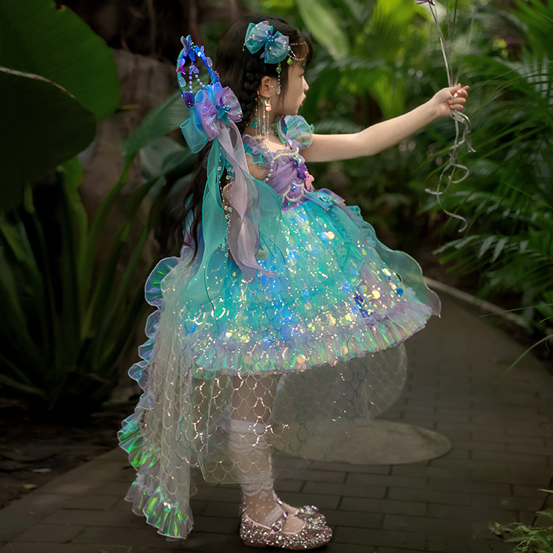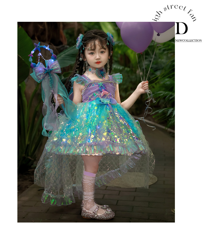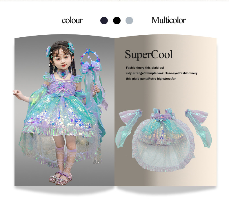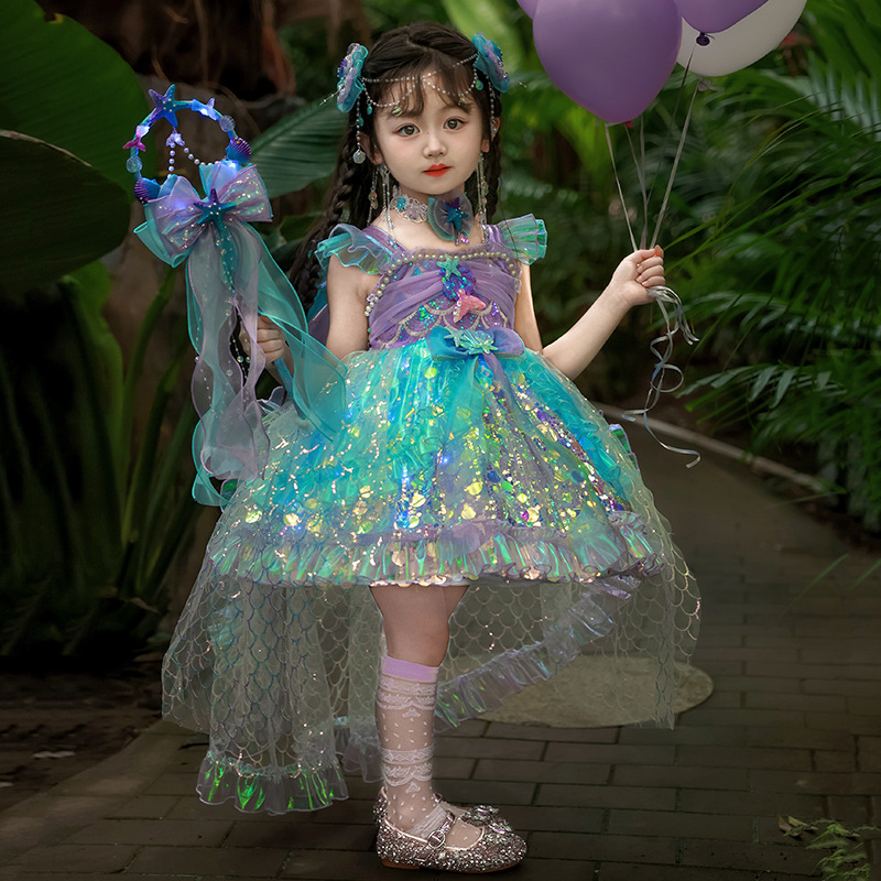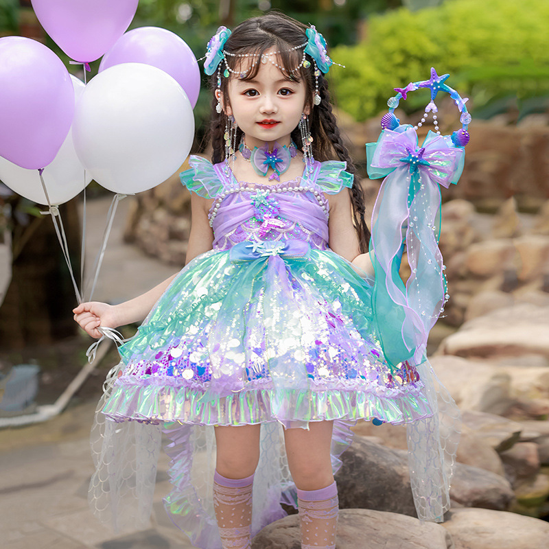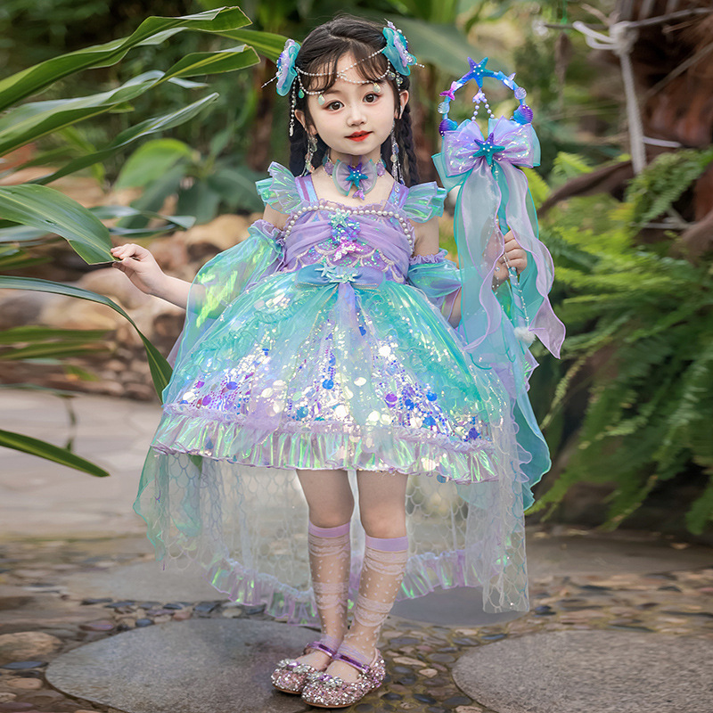 소녀 원피스 2025 여름 새 도착 아기 소녀 인어 로리타 피쉬 테일 공주 어린이 스퀸 스커트스토어 가기