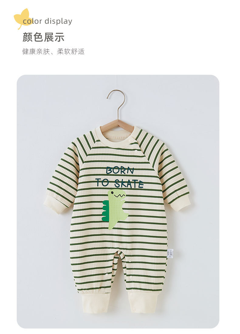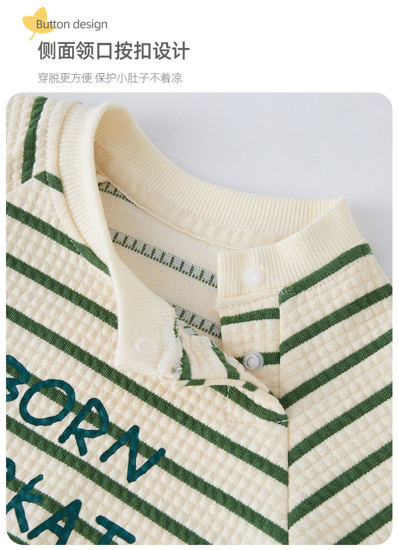 아기 옷, 봄과 가을 점프 슈트, 신생아 긴팔 귀여운 크롤링 옷, 남성과 여성의 줄무늬 가을 아기 외출복스토어 가기