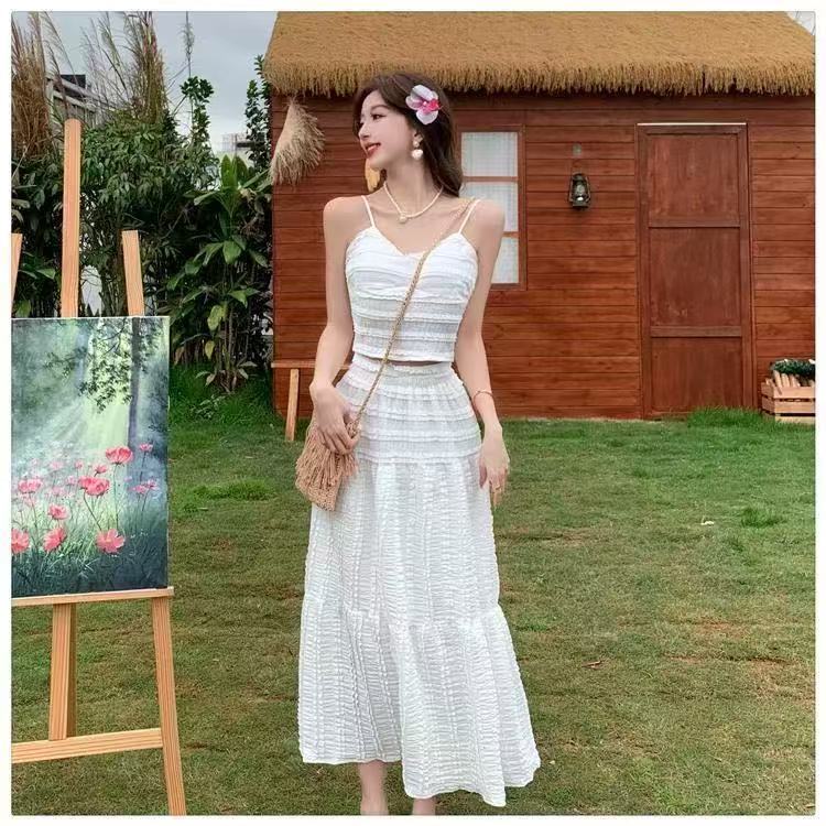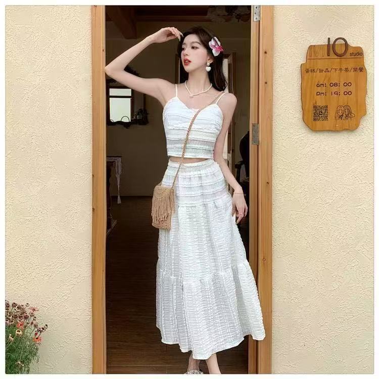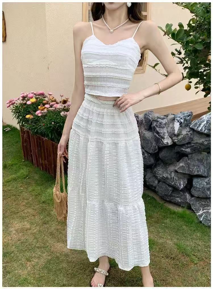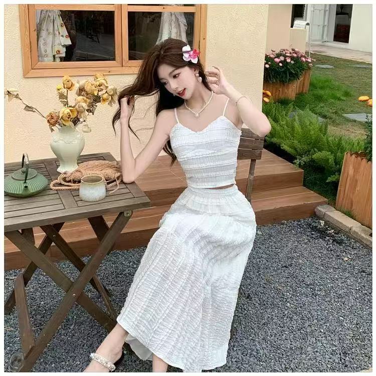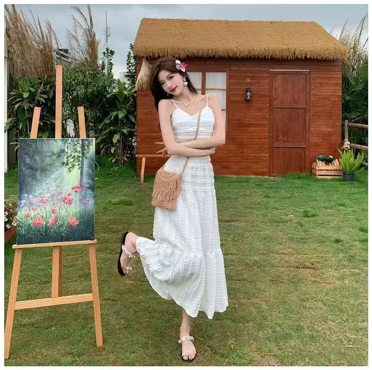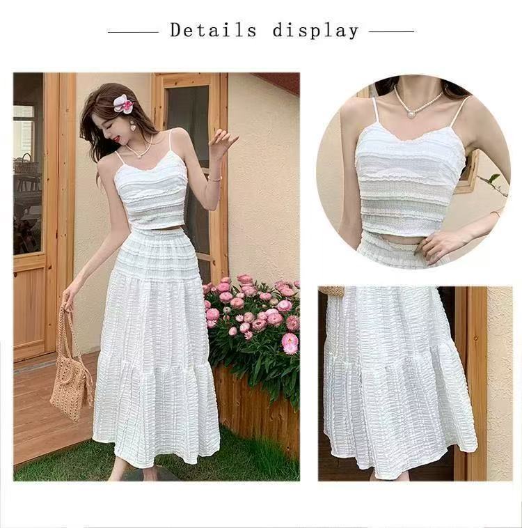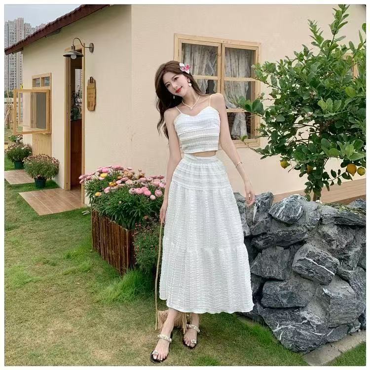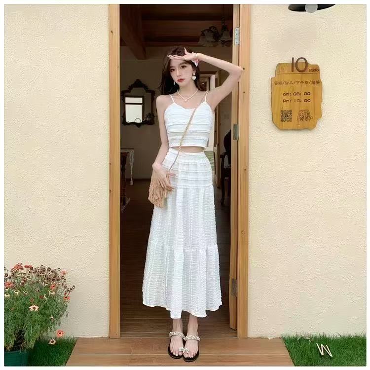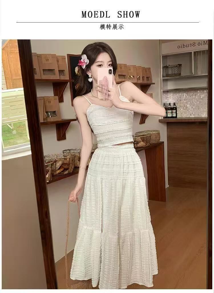 프랑스 스타일의 부드러운 스타일 스커트 여성의 새로운 높은 허리 딥 케이크 스커트 우아한 긴 스커트 카미솔 세트