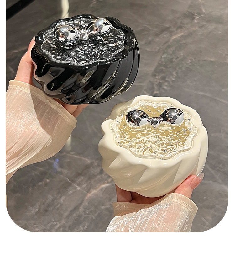 • 세라믹 유백색 재떨이 + 핑크 리본 + 세라믹 뚜껑