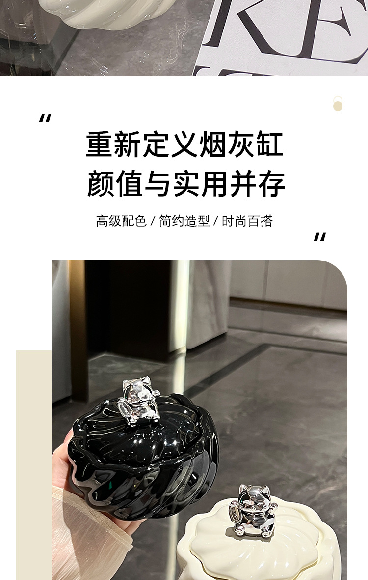 • 세라믹 유백색 재떨이 + 행운의 고양이 + 세라믹 뚜껑