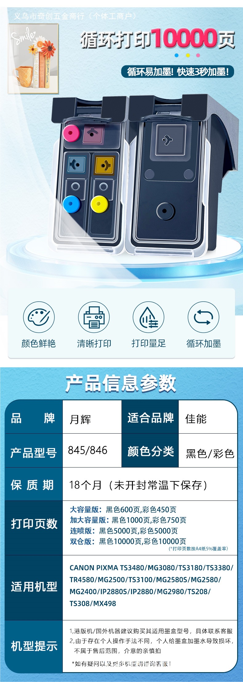 • 846 연속 스프레이 컬러, 잉크 리필 주기, 300ML 잉크 5000페이지 제공