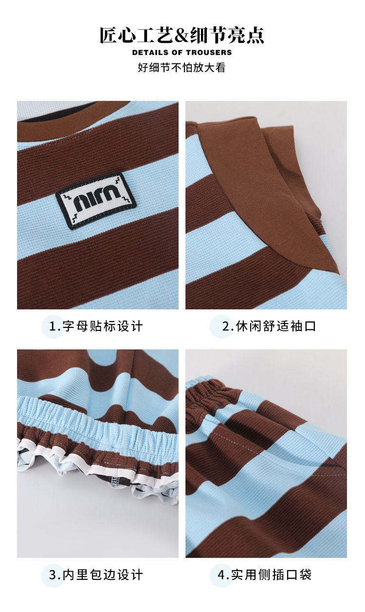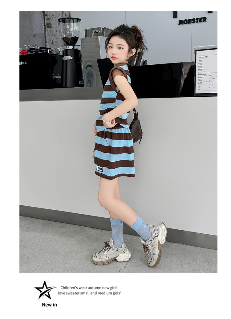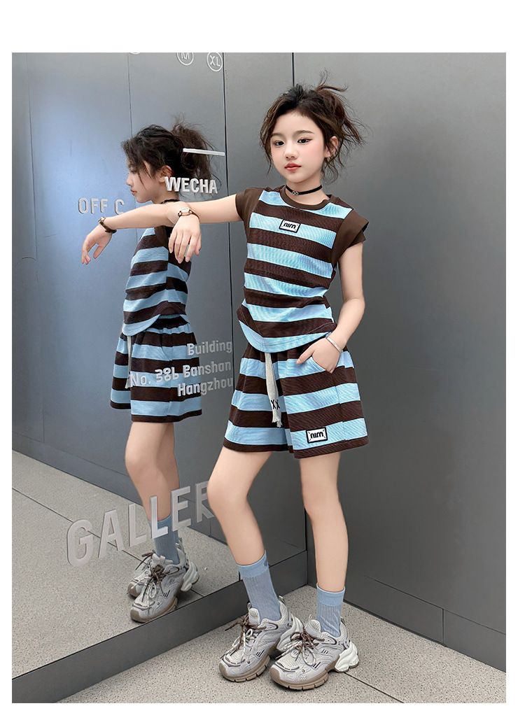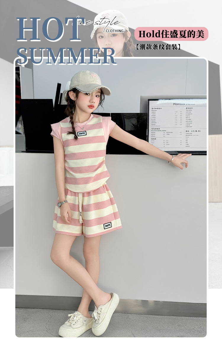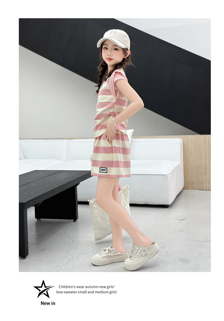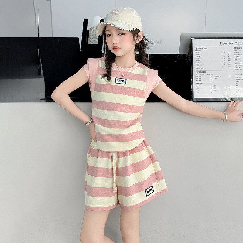 소녀 여름 세트 얇은 느슨한 줄무늬 스포츠 외국식 어린이 아기 옷 어린 소녀 캐주얼 옷 세트