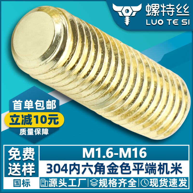 304 스테인레스 스틸 골드 도금 플랫 엔드 머신 미터 스크류 스톱 세트 스크류 도매 M2/M3/M4/M5/M6/M8