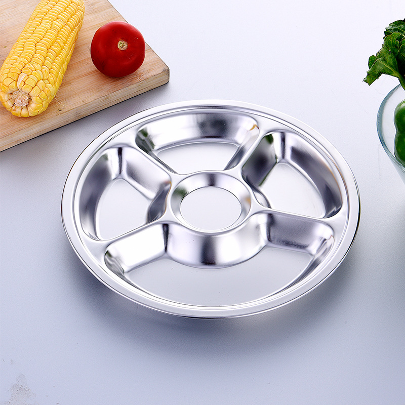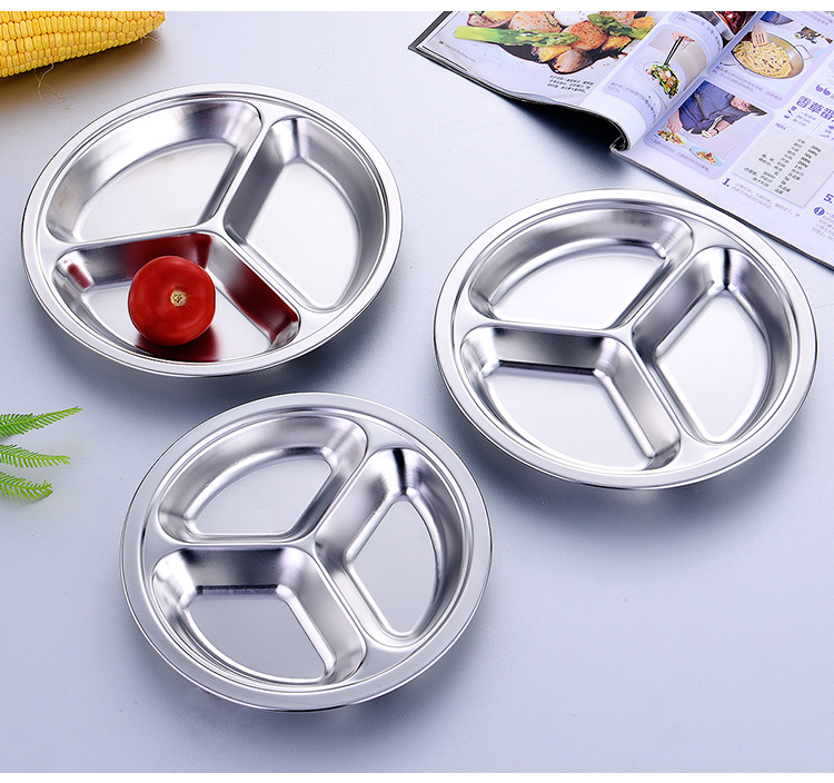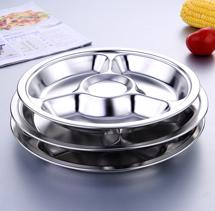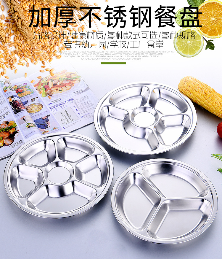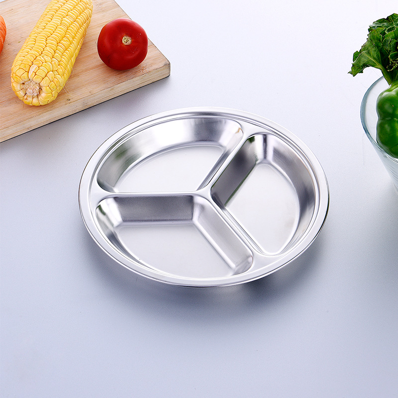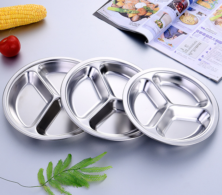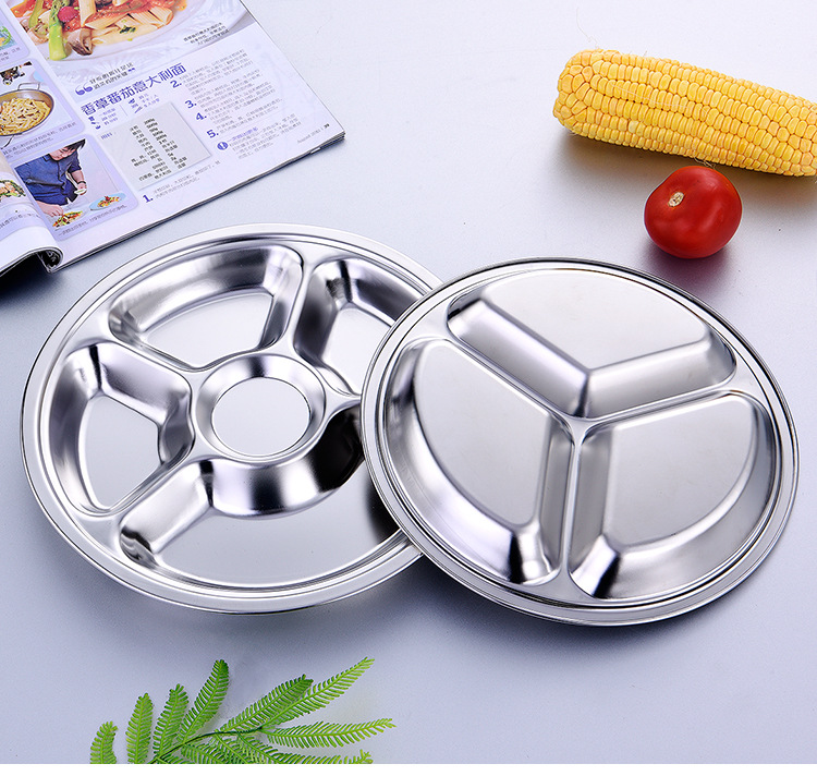 공장 도매 비 자기 스테인레스 스틸 플레이트 라운드 플레이트 그리드 플레이트 3 그리드 4 5 6 그리드 패스트 푸드 플레이트 학생 플레이트스토어 가기