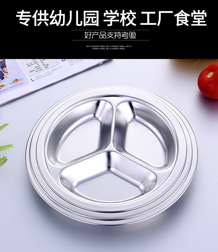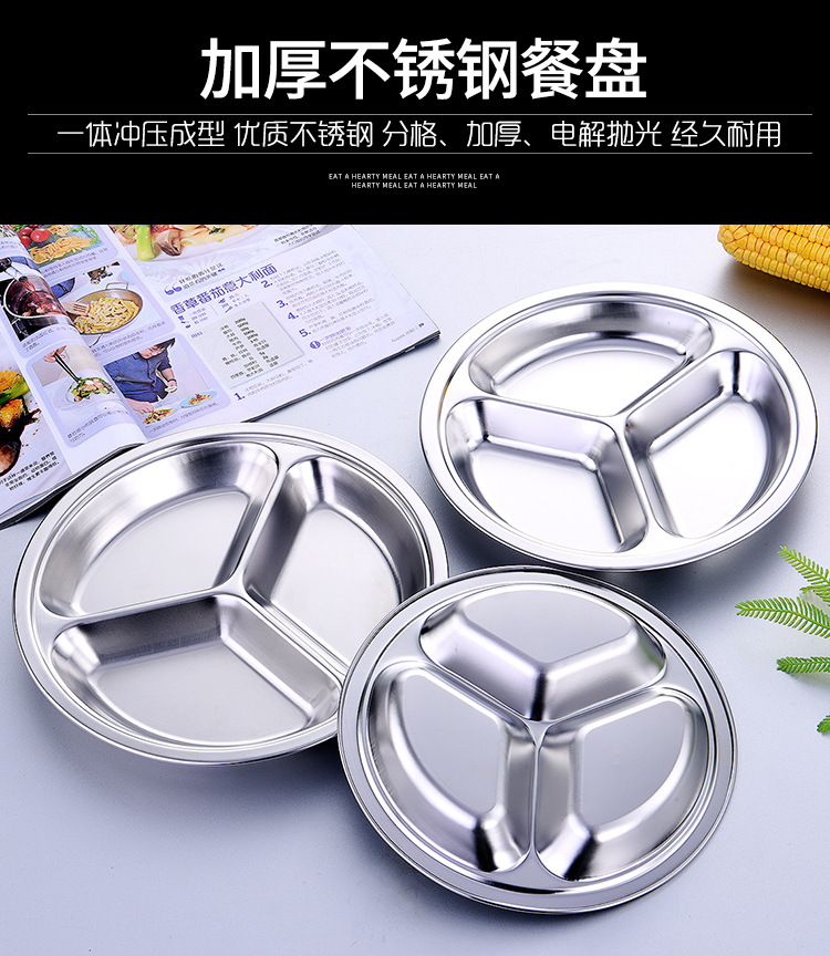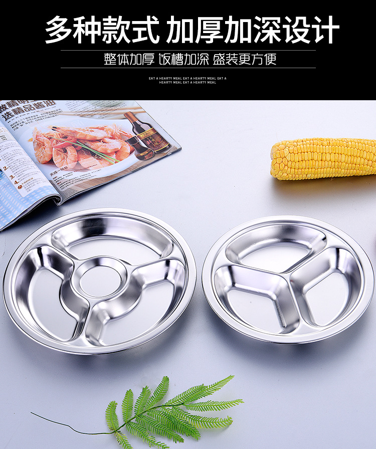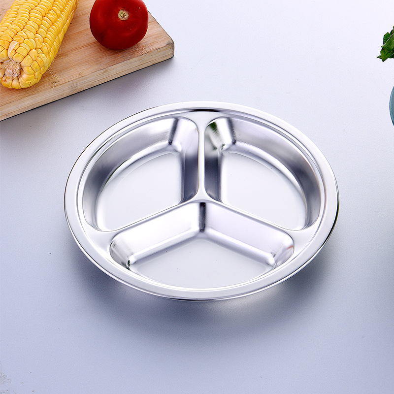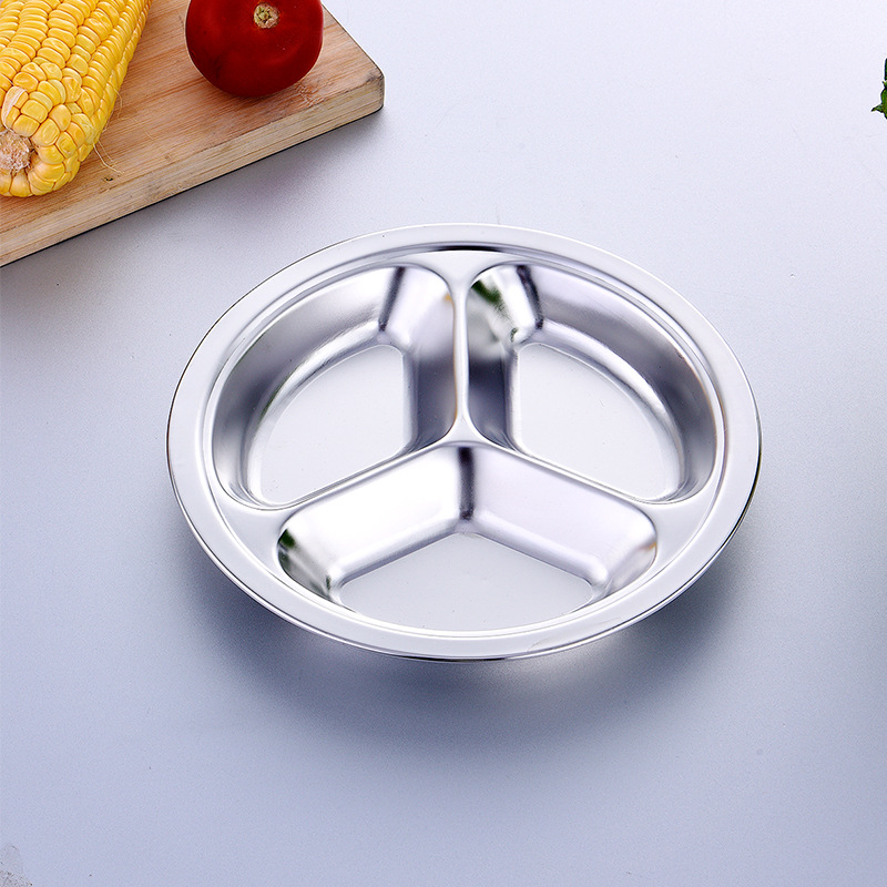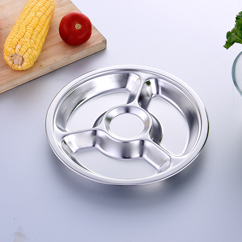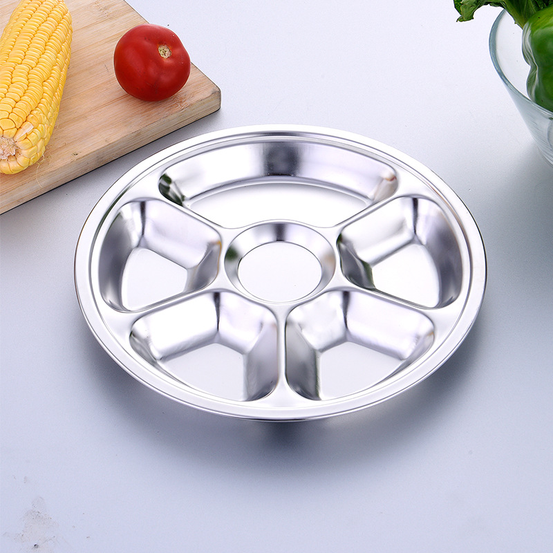 공장 도매 비 자기 스테인레스 스틸 플레이트 라운드 플레이트 그리드 플레이트 3 그리드 4 5 6 그리드 패스트 푸드 플레이트 학생 플레이트스토어 가기