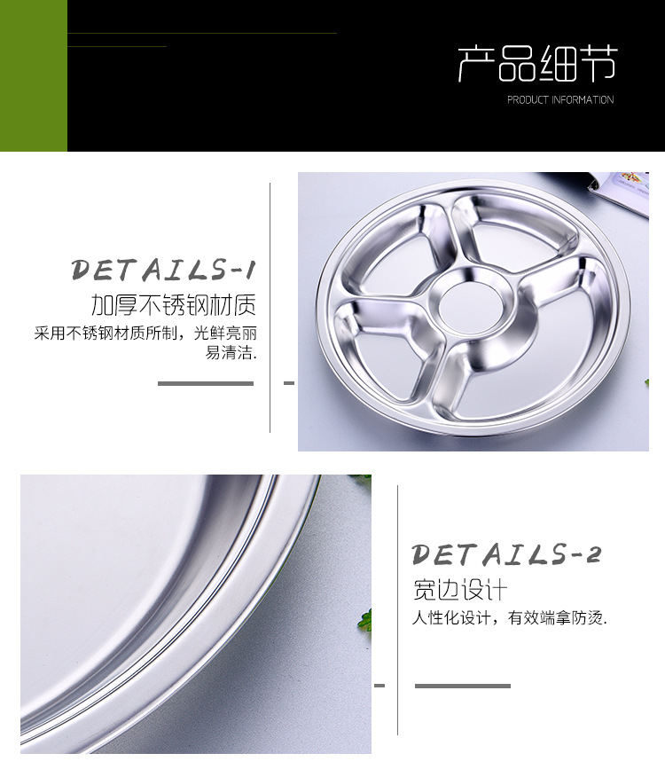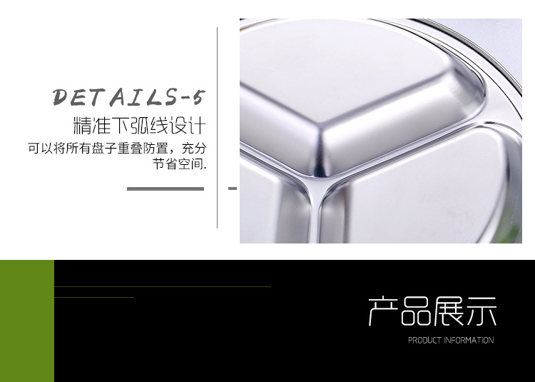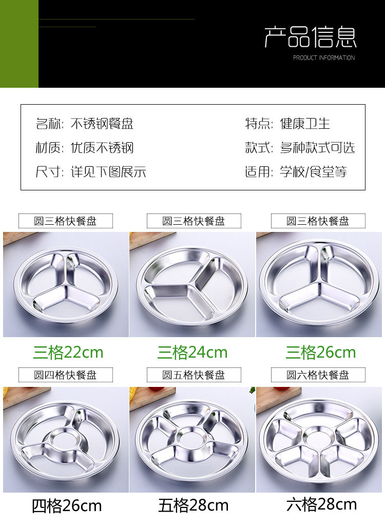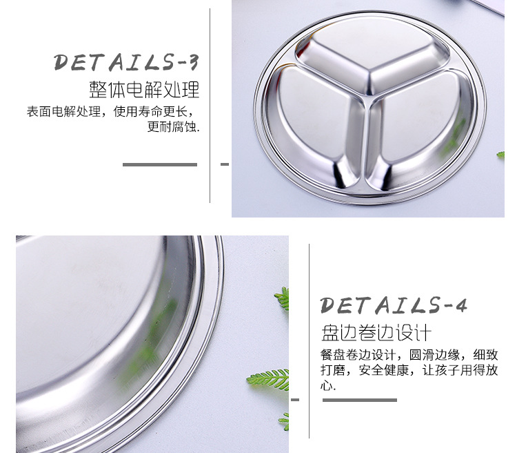 공장 도매 비 자기 스테인레스 스틸 플레이트 라운드 플레이트 그리드 플레이트 3 그리드 4 5 6 그리드 패스트 푸드 플레이트 학생 플레이트