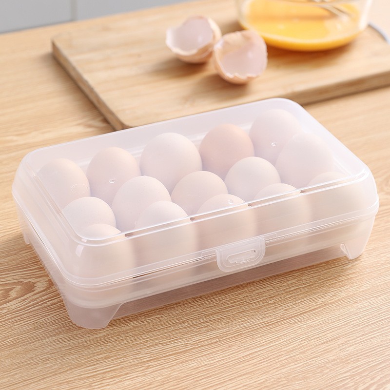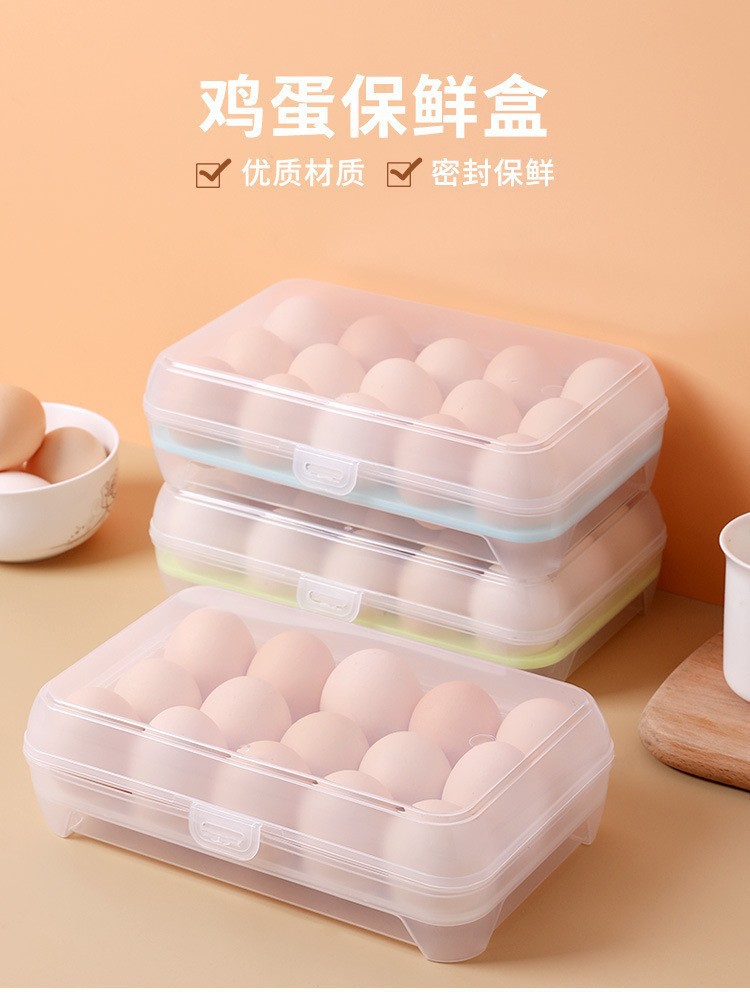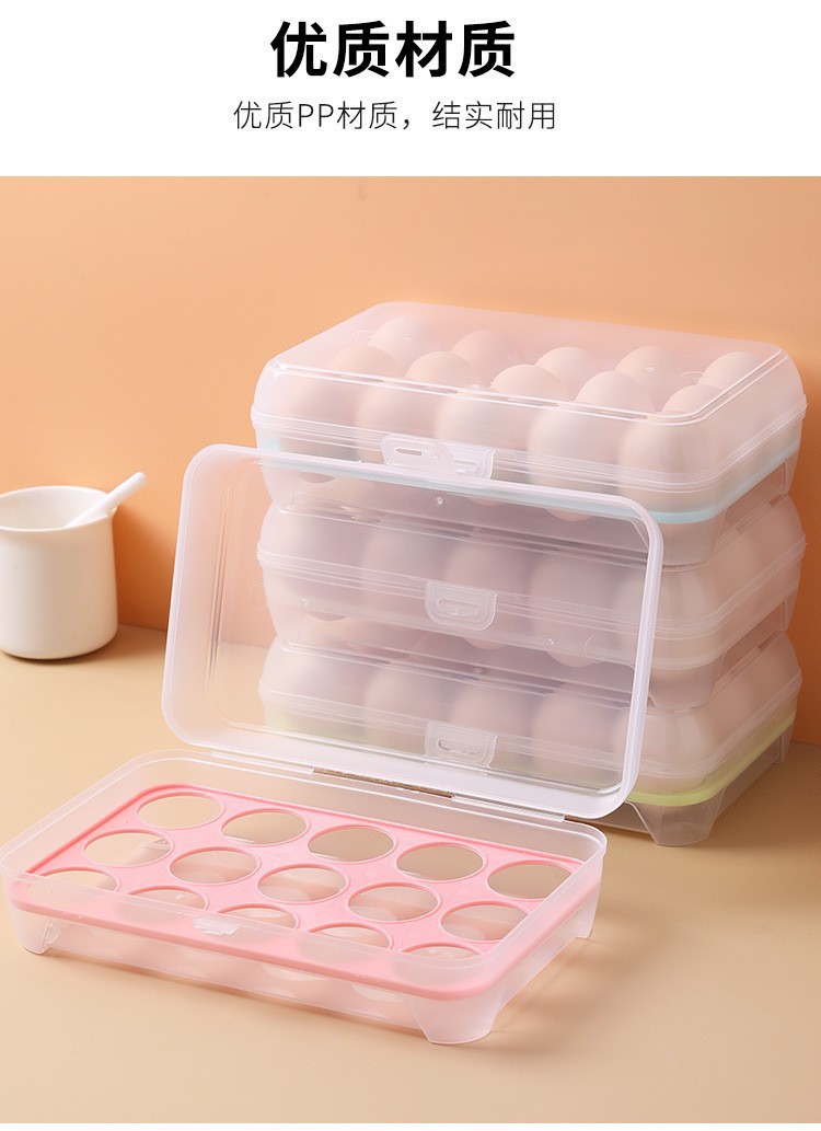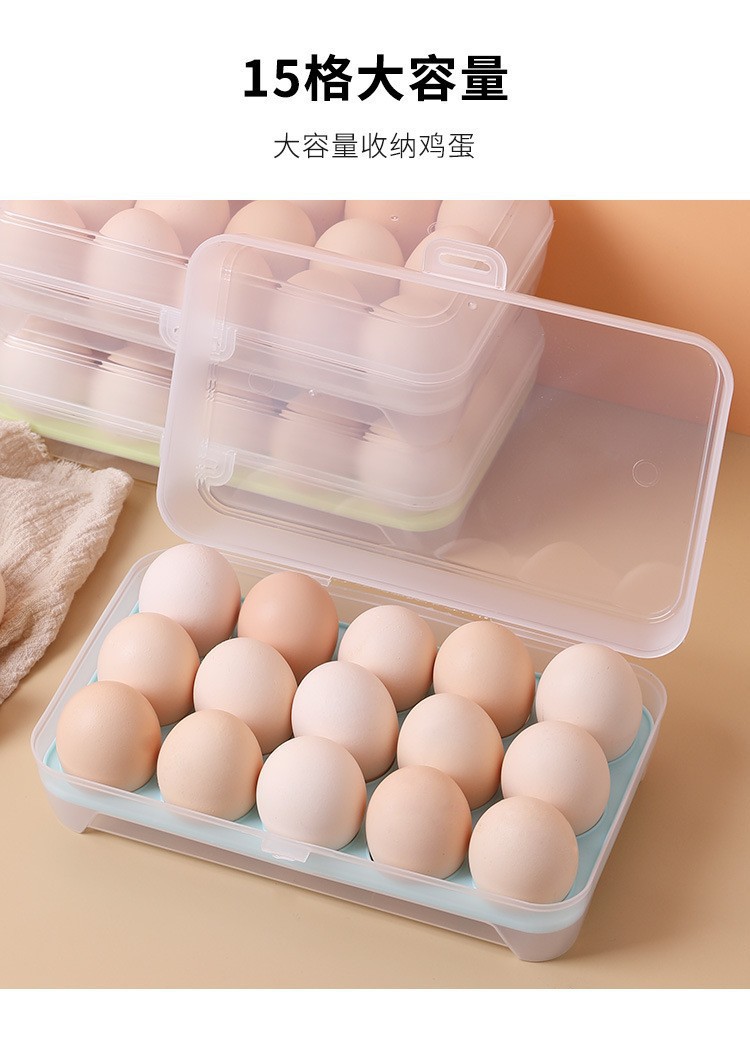 국경 간 주방 15 그리드 냉장고 계란 상자 플라스틱 휴대용 식품 저장 상자 투명 상자스토어 가기