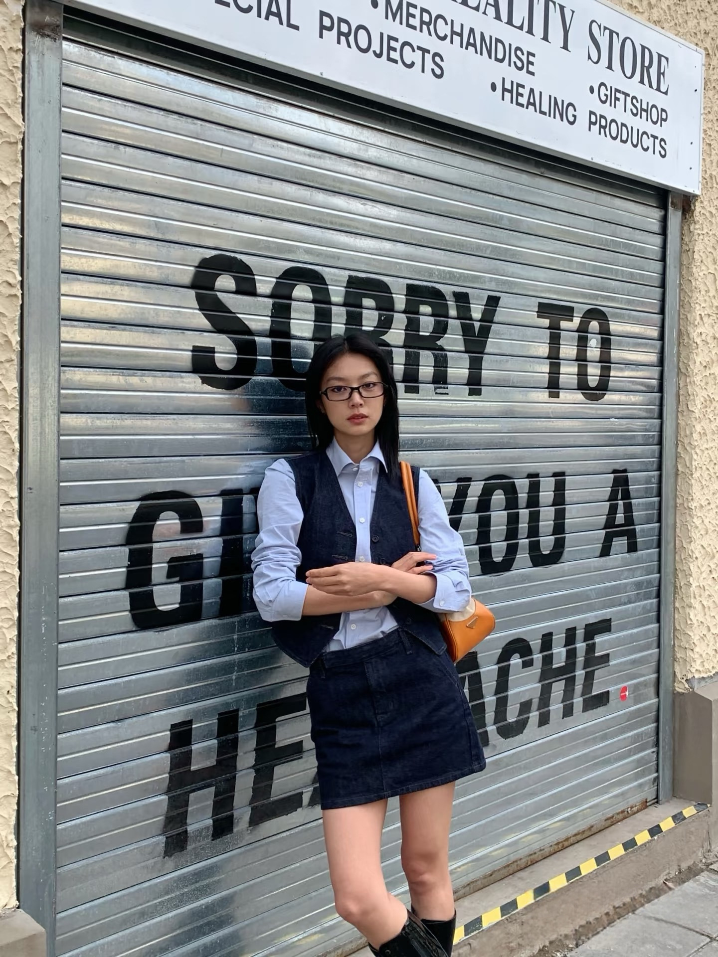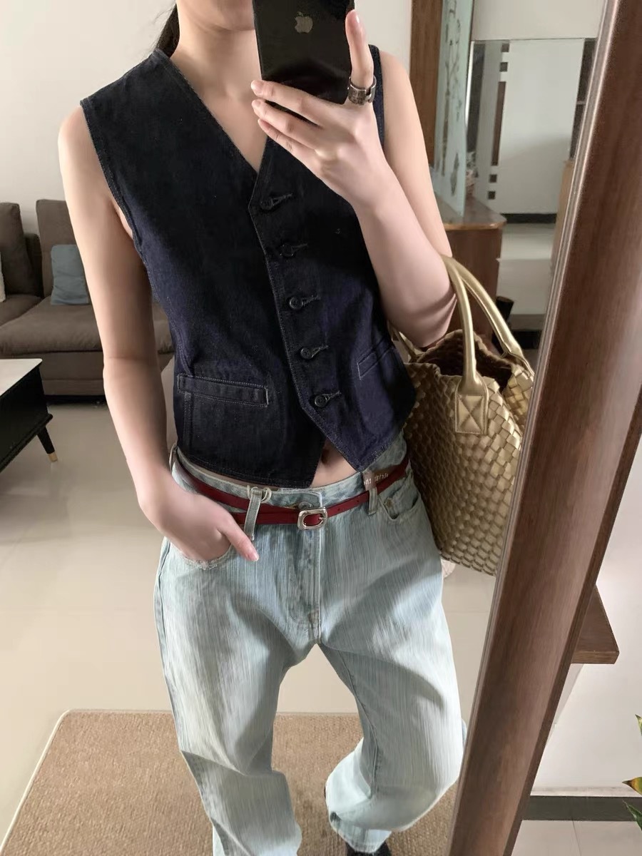 새로운 도착 올 매치 슬림 룩 클래식 오리지널 카우 레트로 V-넥 타이트 허리 데님 조끼 여자 5006