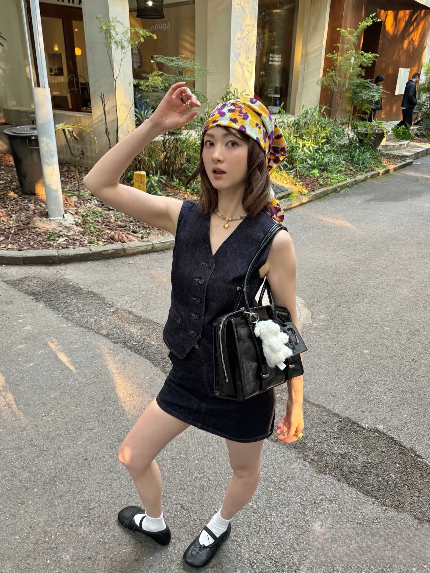 새로운 도착 올 매치 슬림 룩 클래식 오리지널 카우 레트로 V-넥 타이트 허리 데님 조끼 여자 5006스토어 가기