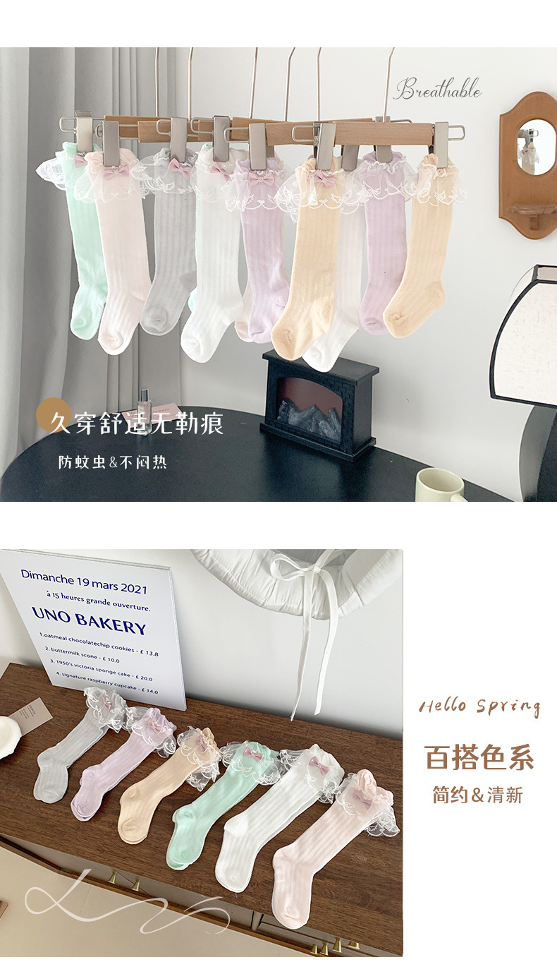 어린이 초박형 메쉬 오버 더 무릎 스타킹 봄과 여름 아기 레이스 하이 튜브 안티 모기 양말 소녀 통기성 공주 양말스토어 가기