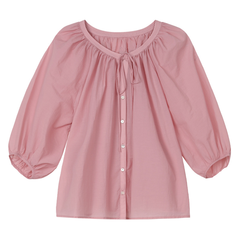 TG 한 팬 부드러운 스트랩 랜턴 슬리브 여성용 2025 년 여름 새로운 느슨한 7 점 슬리브 얇은 탑 24820