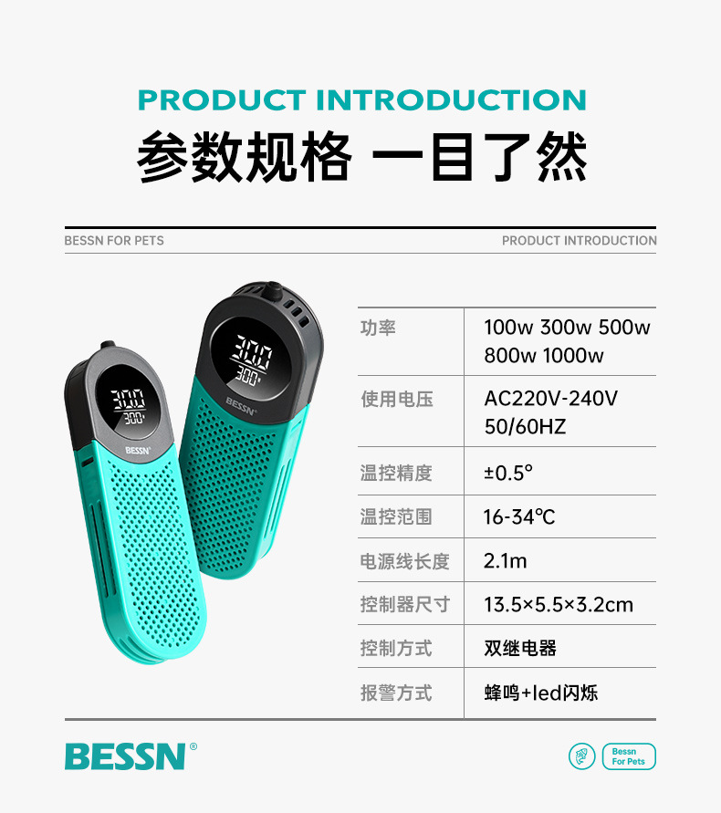 BESSN 인버터 티타늄 가열 막대 지능형 알람 디지털 디스플레이 자동 항온 거북이 물고기 탱크 히터