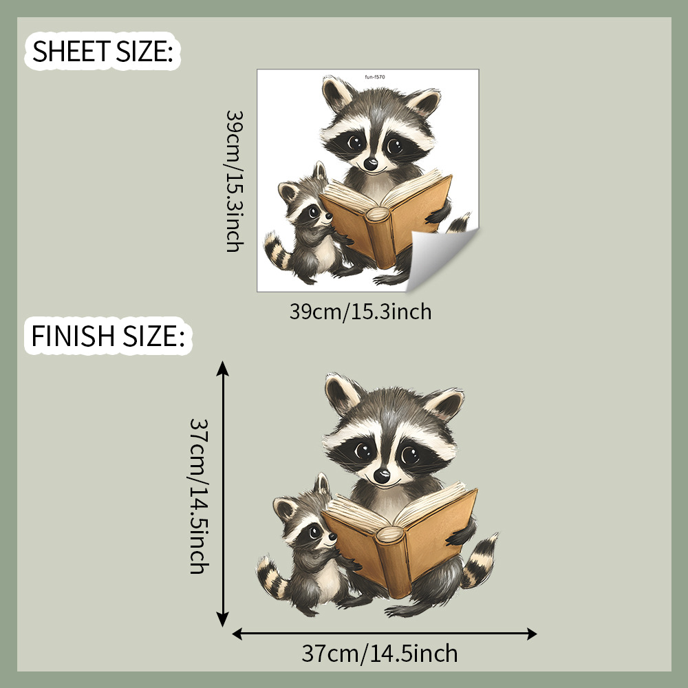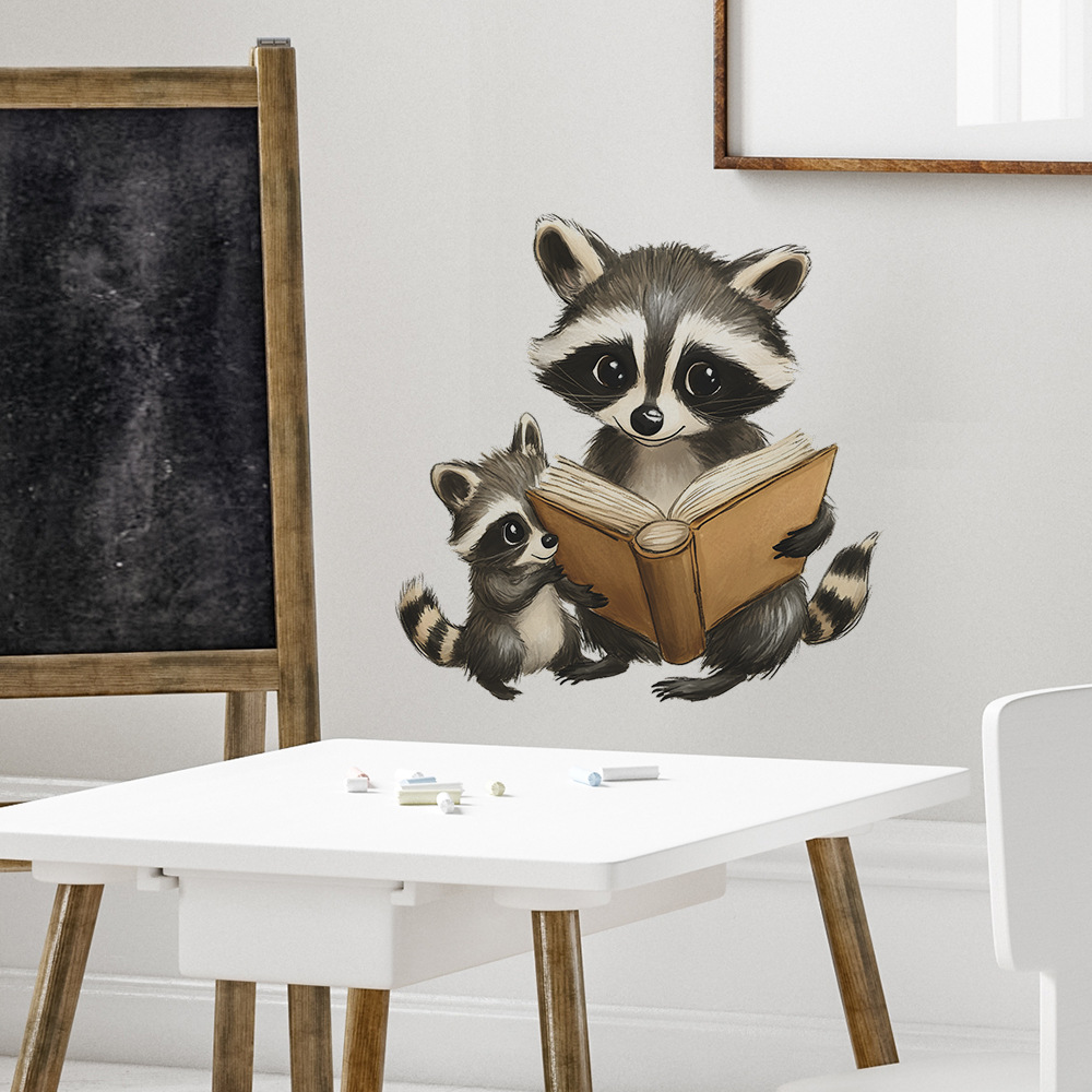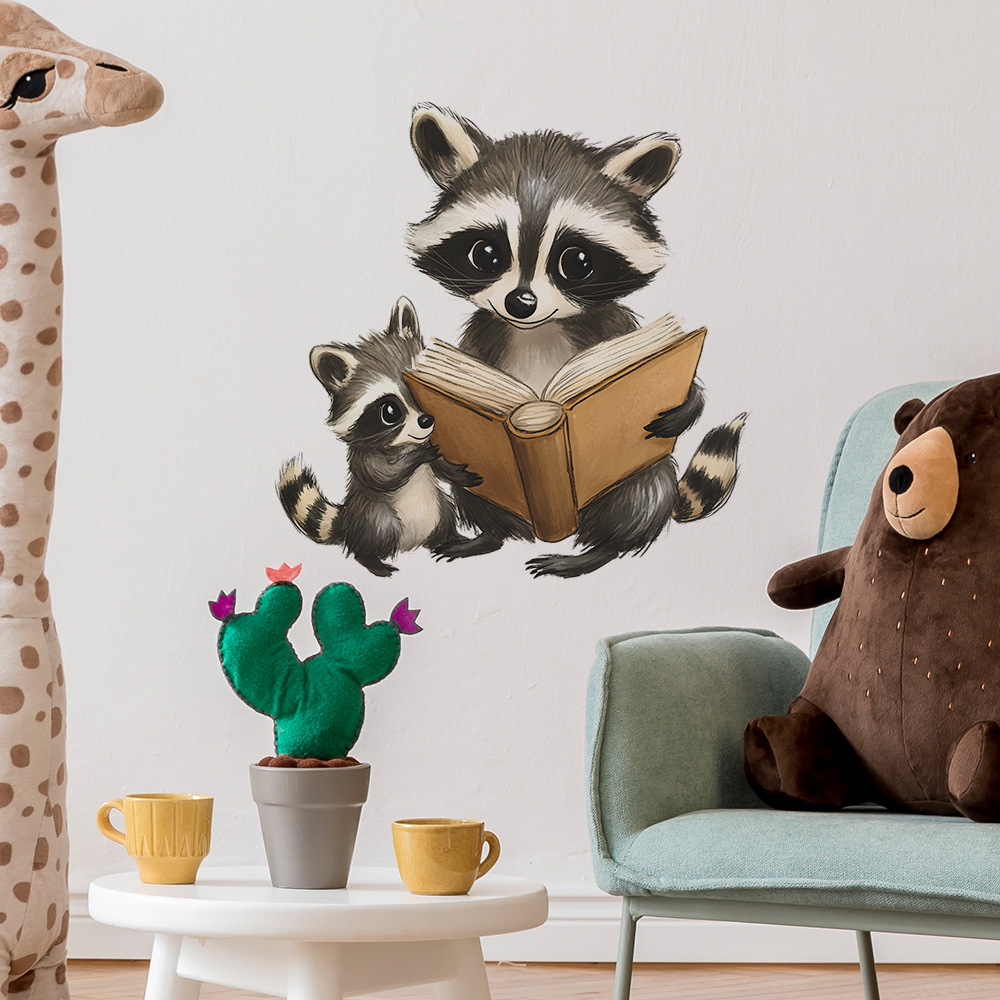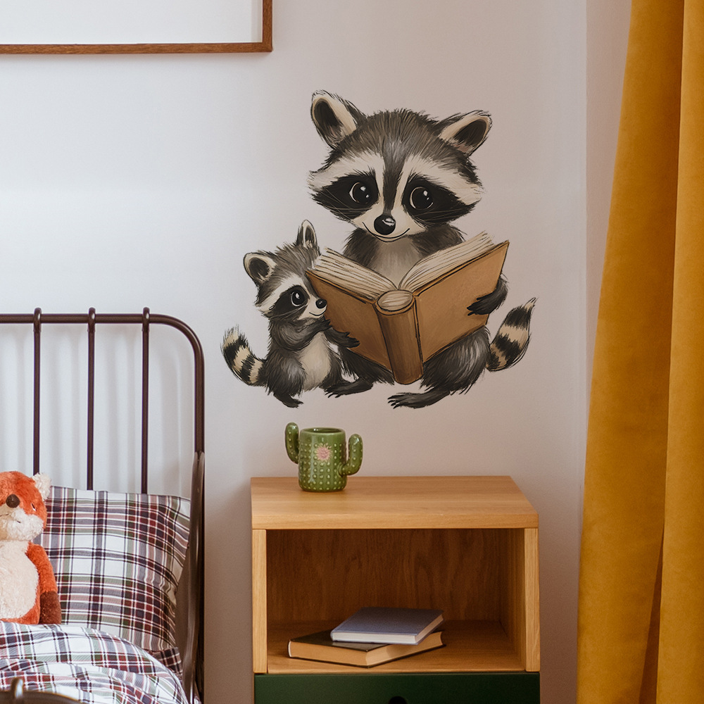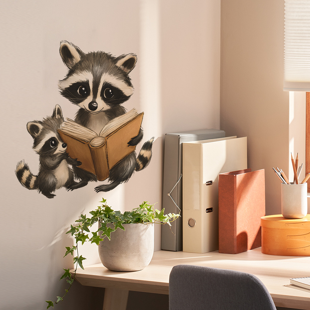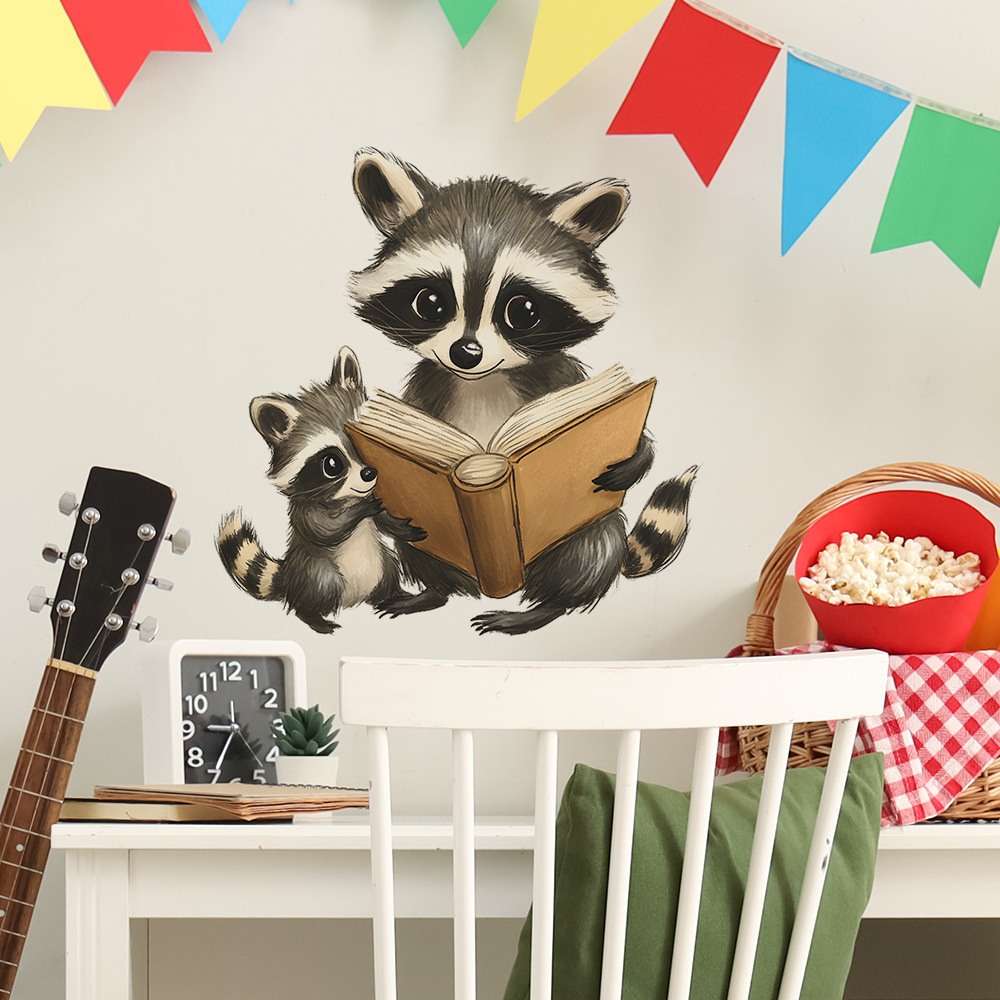 Fun-f570 대외 무역 만화 작은 너구리 독서 침실 거실 홈 벽 배경 미화 장식 벽 스티커