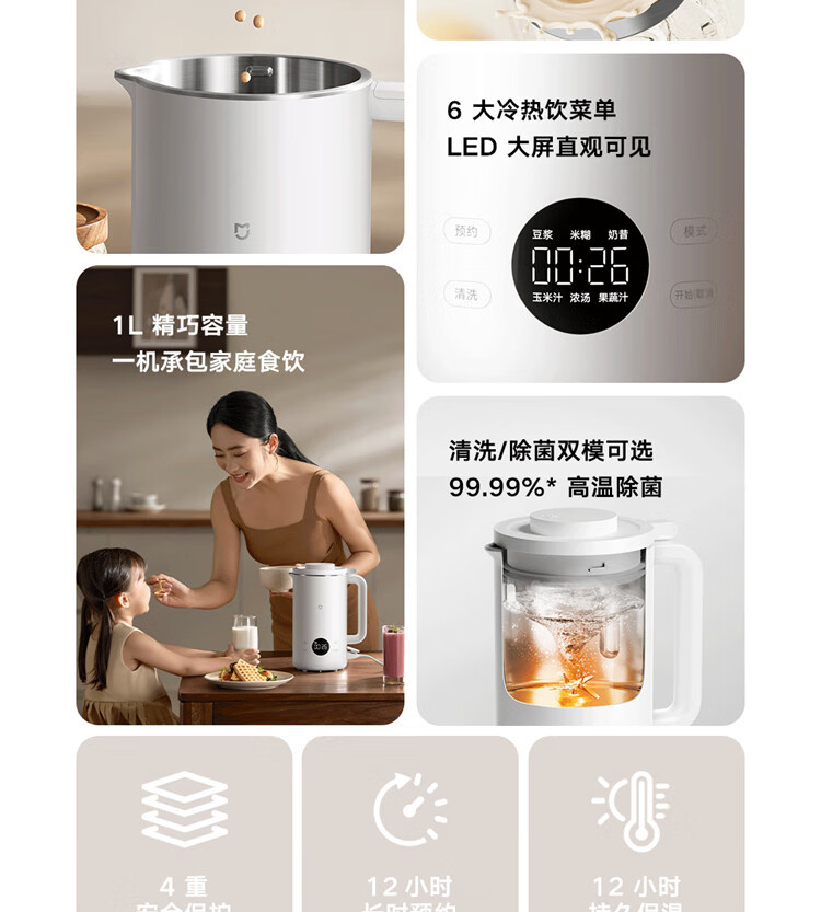 Xiao Mijia 두유 기계 가정용 완전 자동 다기능 조리 없음 필터링 식품 주스 및 벽 파괴 기계스토어 가기