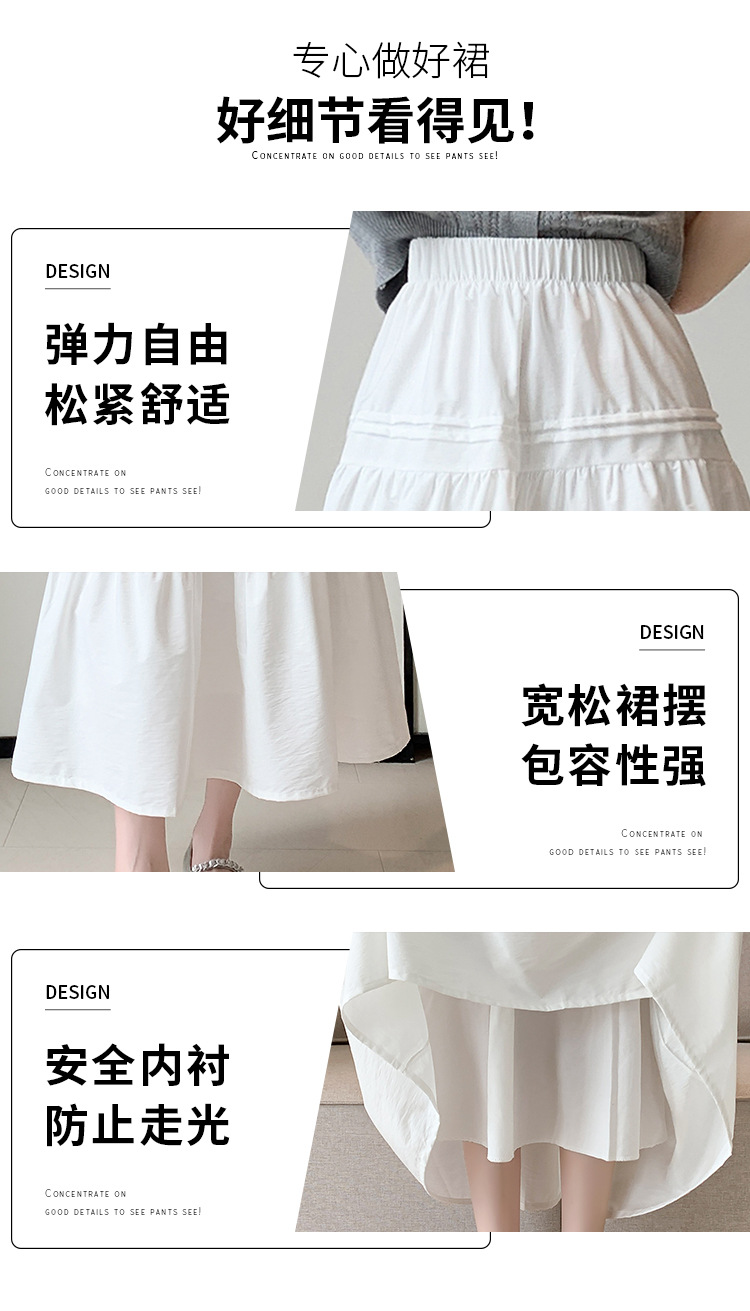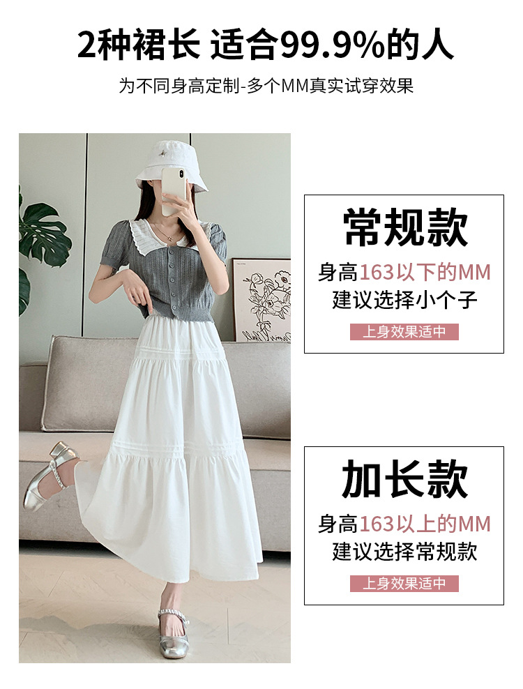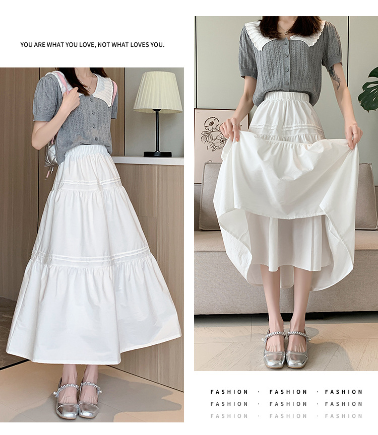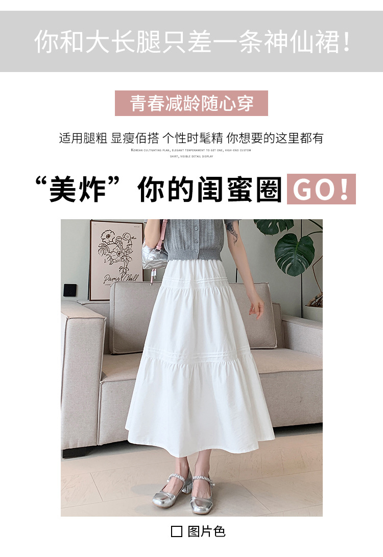 화이트 케이크 스커트 여자 높은 허리 슬리밍 올 매치 스커트 탄성 허리 한국 스타일 부드러운 달콤한 중간 길이 스커트스토어 가기