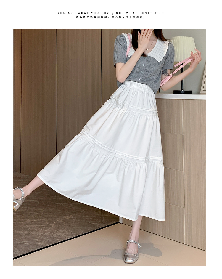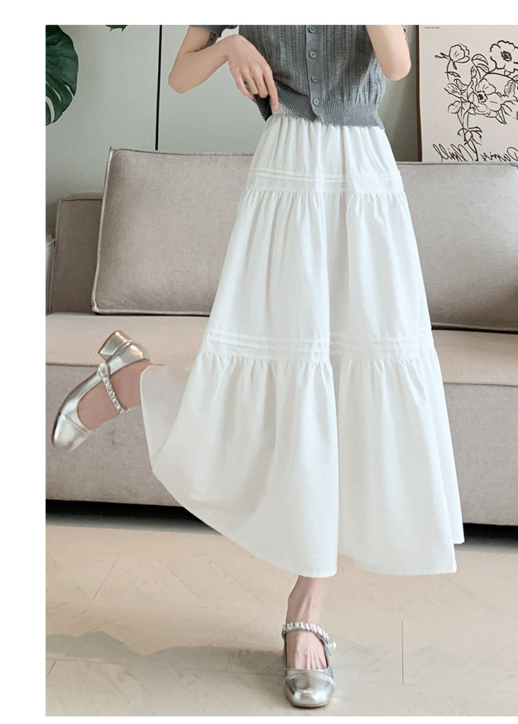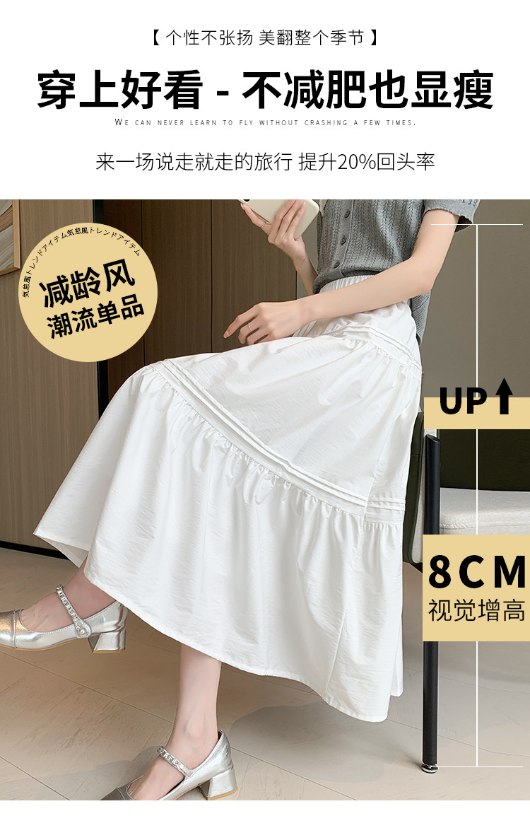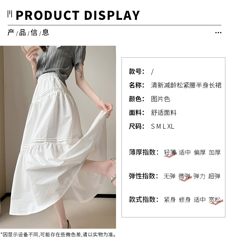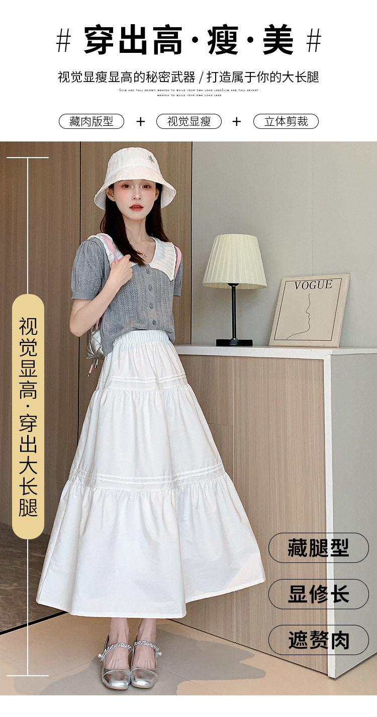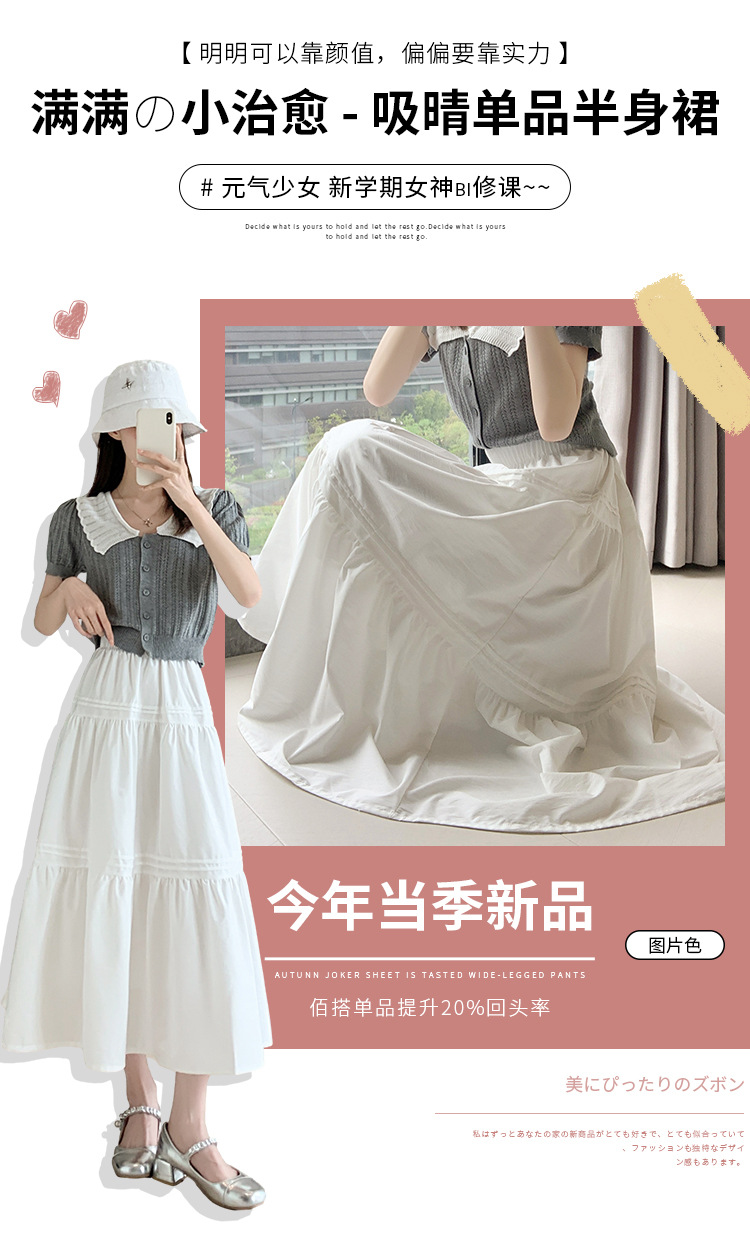 화이트 케이크 스커트 여자 높은 허리 슬리밍 올 매치 스커트 탄성 허리 한국 스타일 부드러운 달콤한 중간 길이 스커트