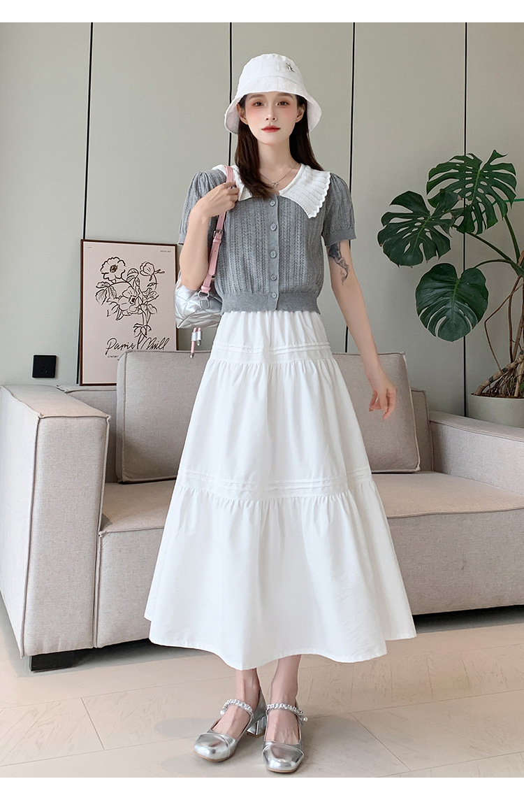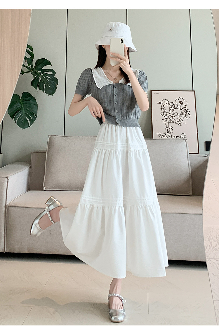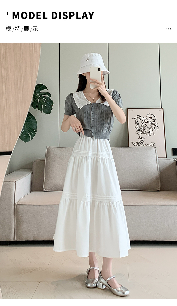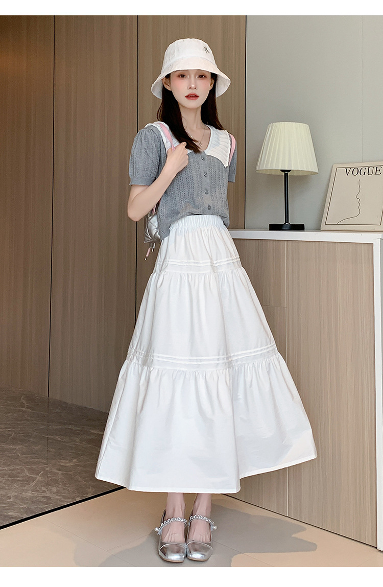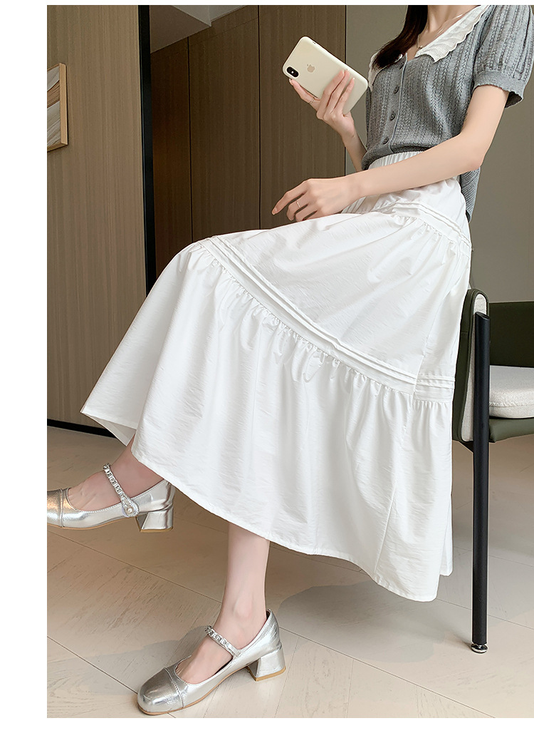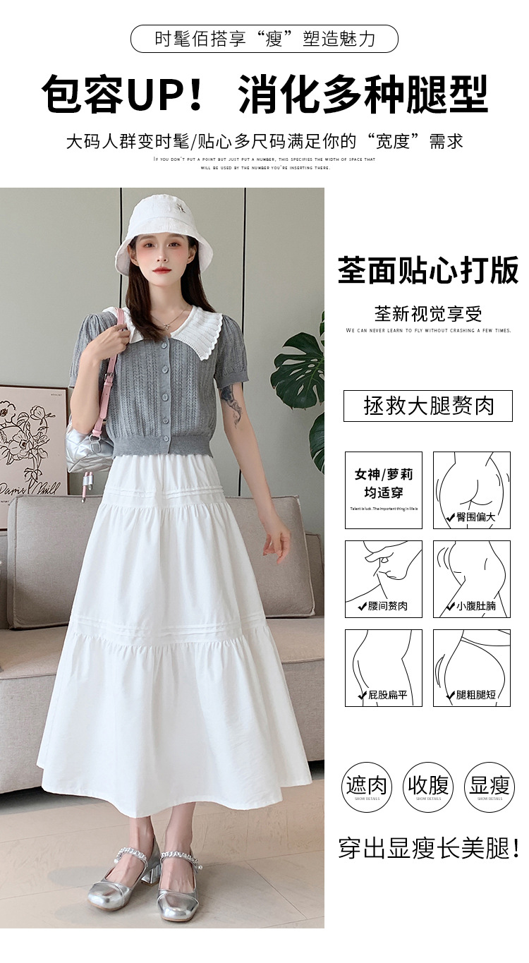 화이트 케이크 스커트 여자 높은 허리 슬리밍 올 매치 스커트 탄성 허리 한국 스타일 부드러운 달콤한 중간 길이 스커트