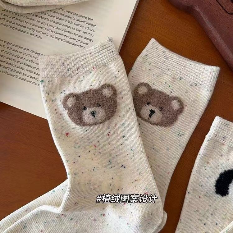 가을 겨울 신상품 곰돌이 양말 여성용 중간 길이 한국 스타일 인스 스타일 다용도 양말 귀여운 만화 여성 양말 주지 양말