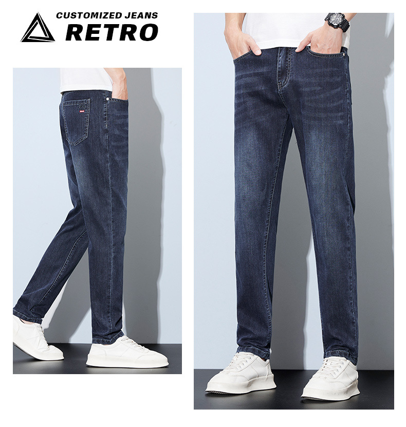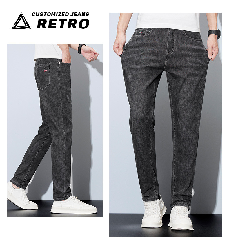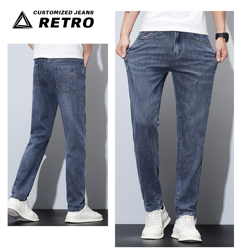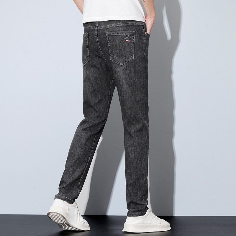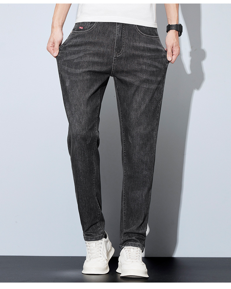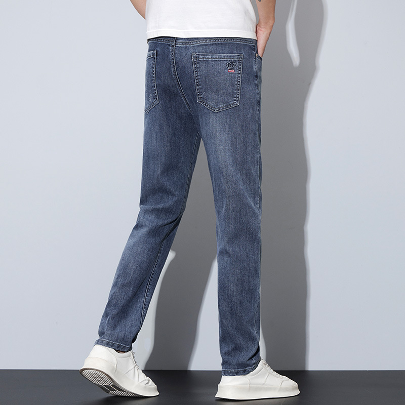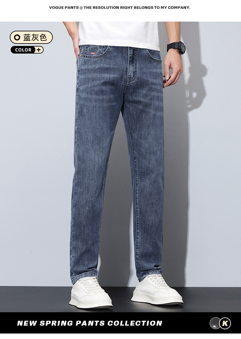 인기있는 남성용 슬림 핏 청바지 2025 여름 새로운 유행 스트레치 스트레이트 레그 캐주얼 롱 팬츠