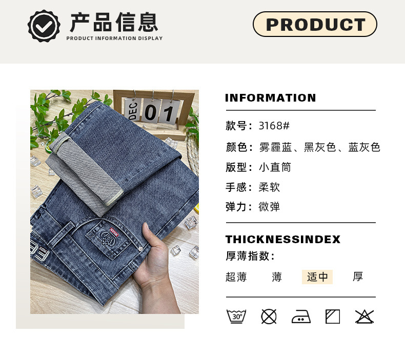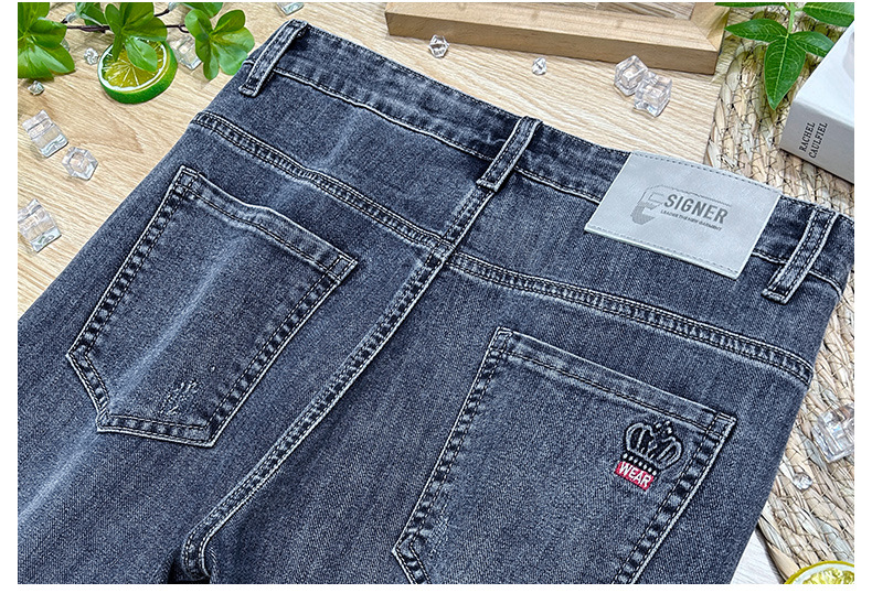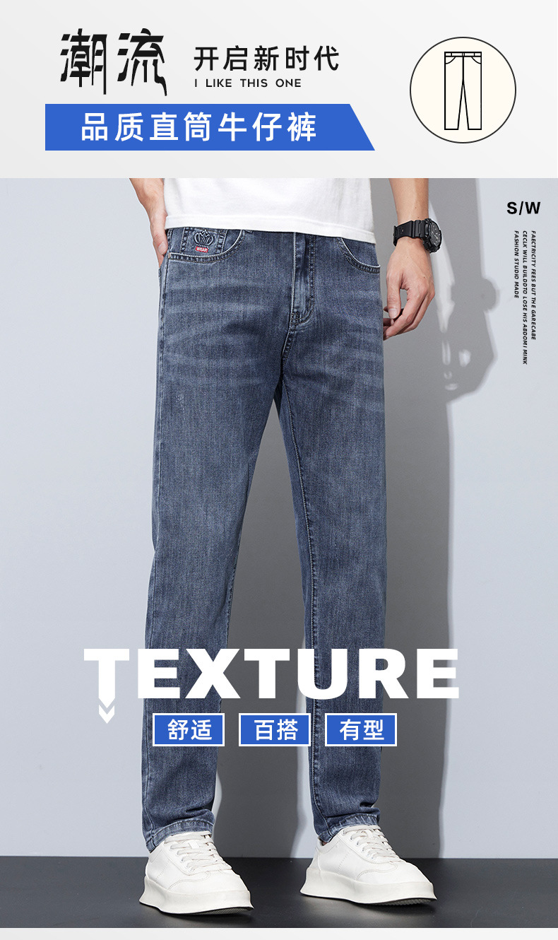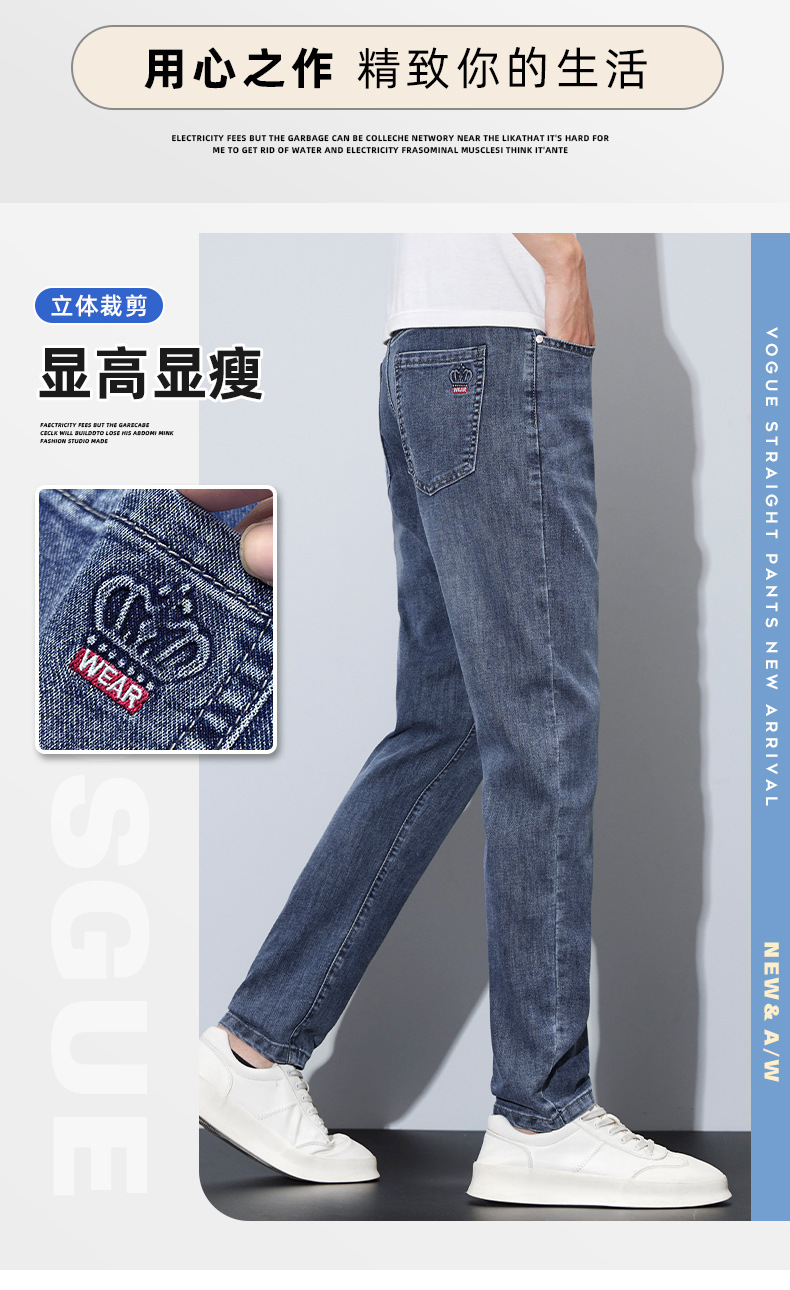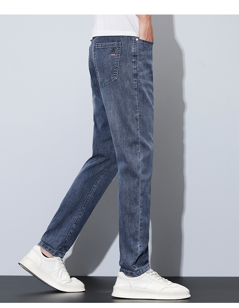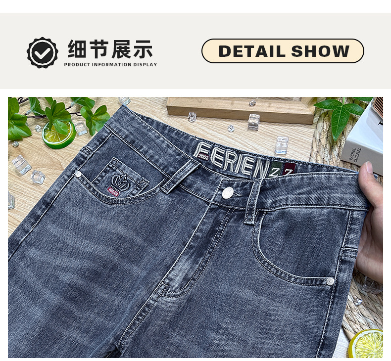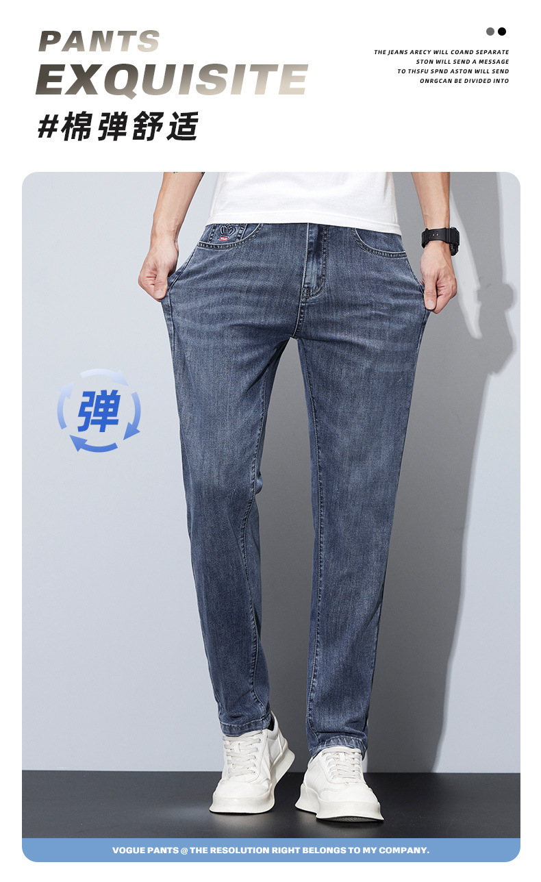 인기있는 남성용 슬림 핏 청바지 2025 여름 새로운 유행 스트레치 스트레이트 레그 캐주얼 롱 팬츠스토어 가기